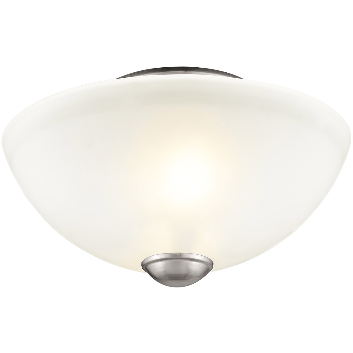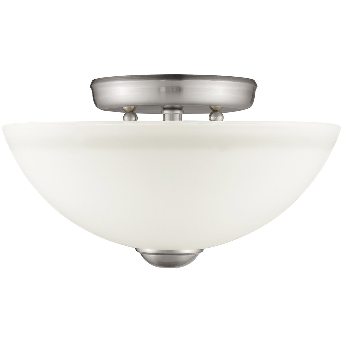 Smooth lines meet gorgeous materials in our Somerset collection. The sleek design will add contemporary class and appeal to your home. This two light ceiling mount features a brushed nickel finish with satin glass.