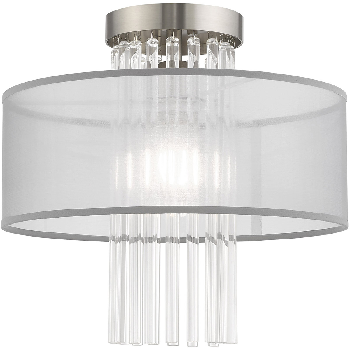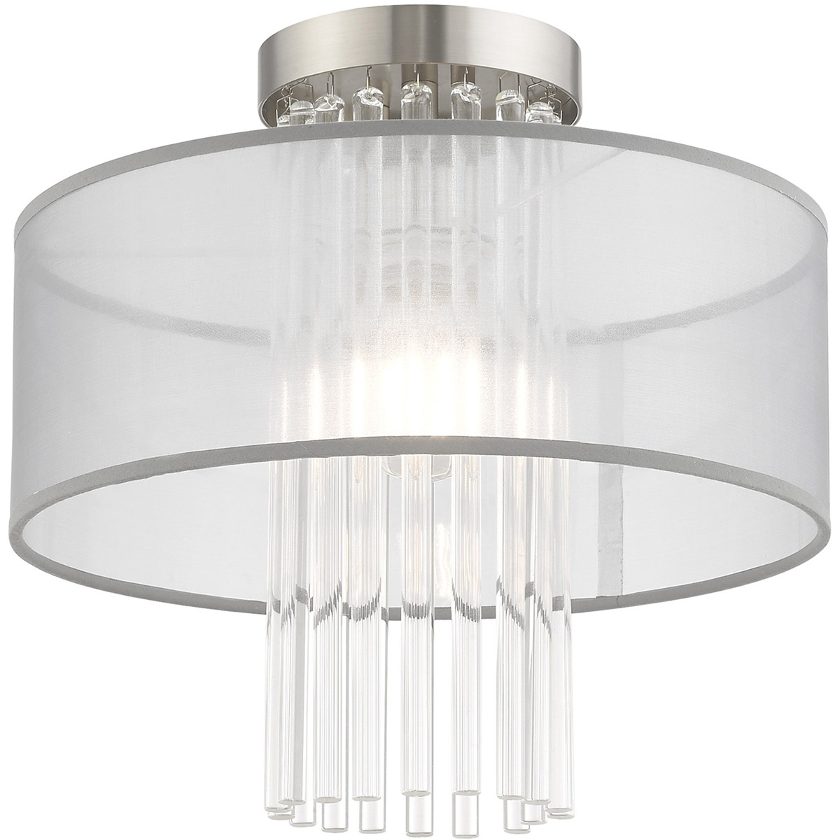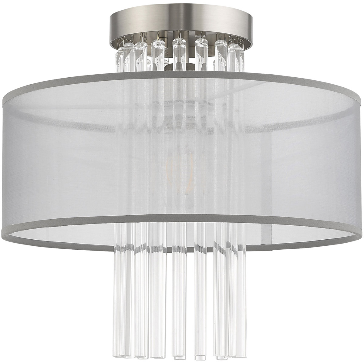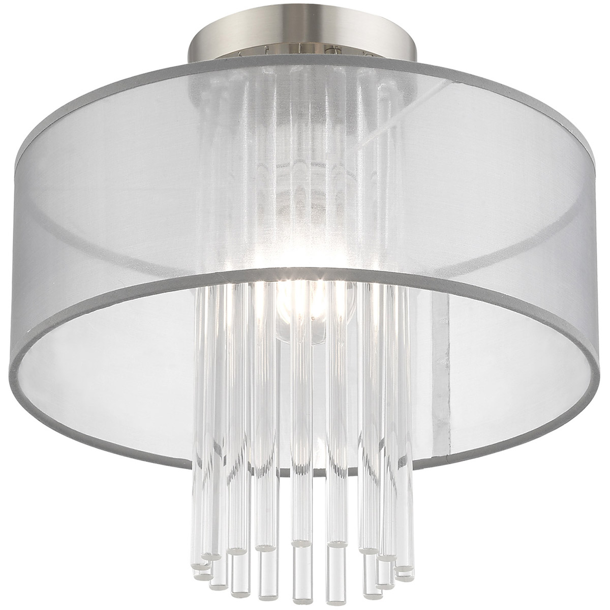 Dazzle contemporary decor schemes with the upscale feel of this elegant ceiling mount. The Alexis fills a bling quotient with beautiful grade-A K9 crystal rods that cascades from a brushed nickel base with a hand crafted translucent gray shade.