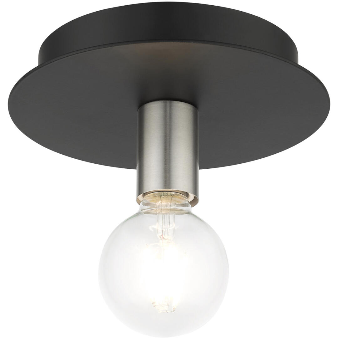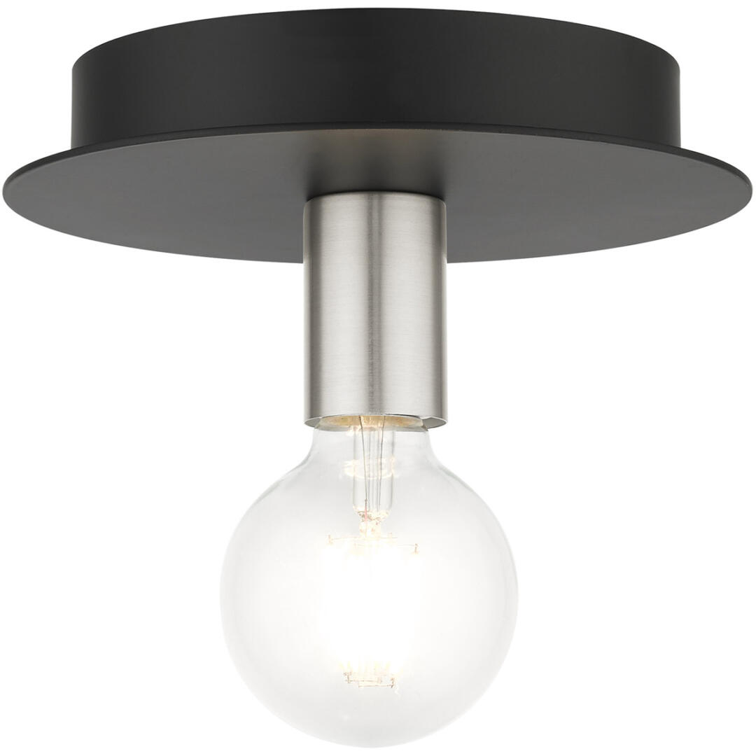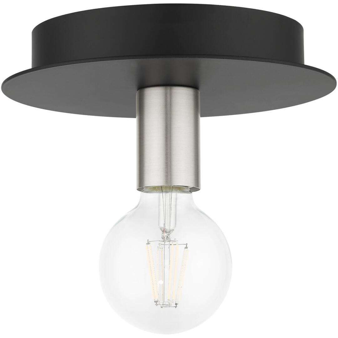 Minimal and versatile describes the Hillview collection. Two-tone finishes grace this group creating a stylish and sophisticated appearance. This one-light flush mount ceiling fixture will look great in a traditional, transitional, modern or contemporary bedroom, hallway, bathroom and kitchen. It is shown in a black finish with brushed nickel finish accents.