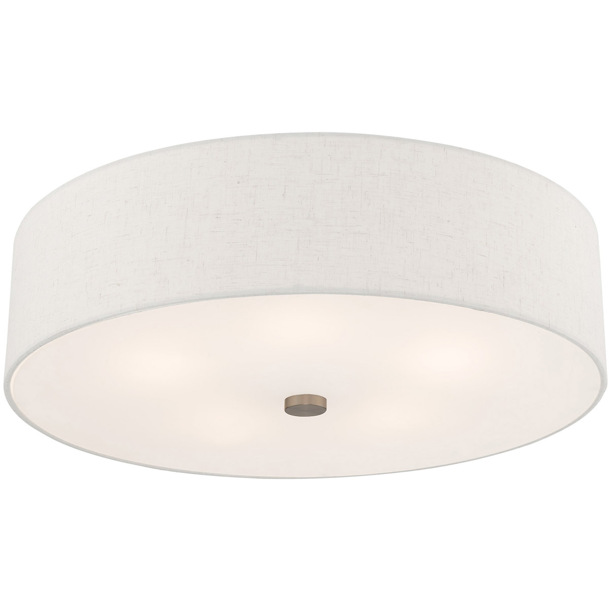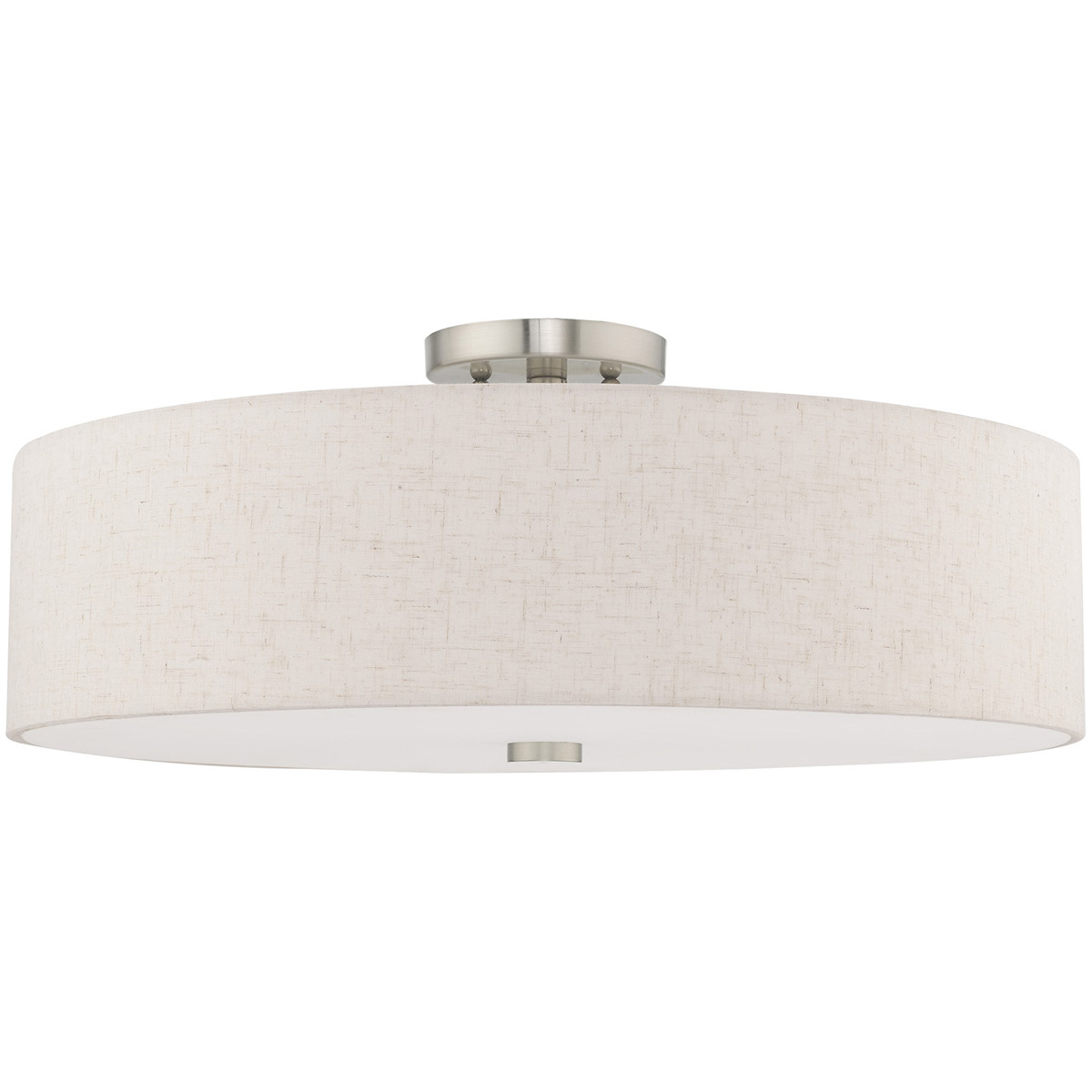 Add style to any room with this elegant semi flush mount. The design features a beautiful hand crafted oatmeal fabric hardback drum shade in a stylish brushed nickel.