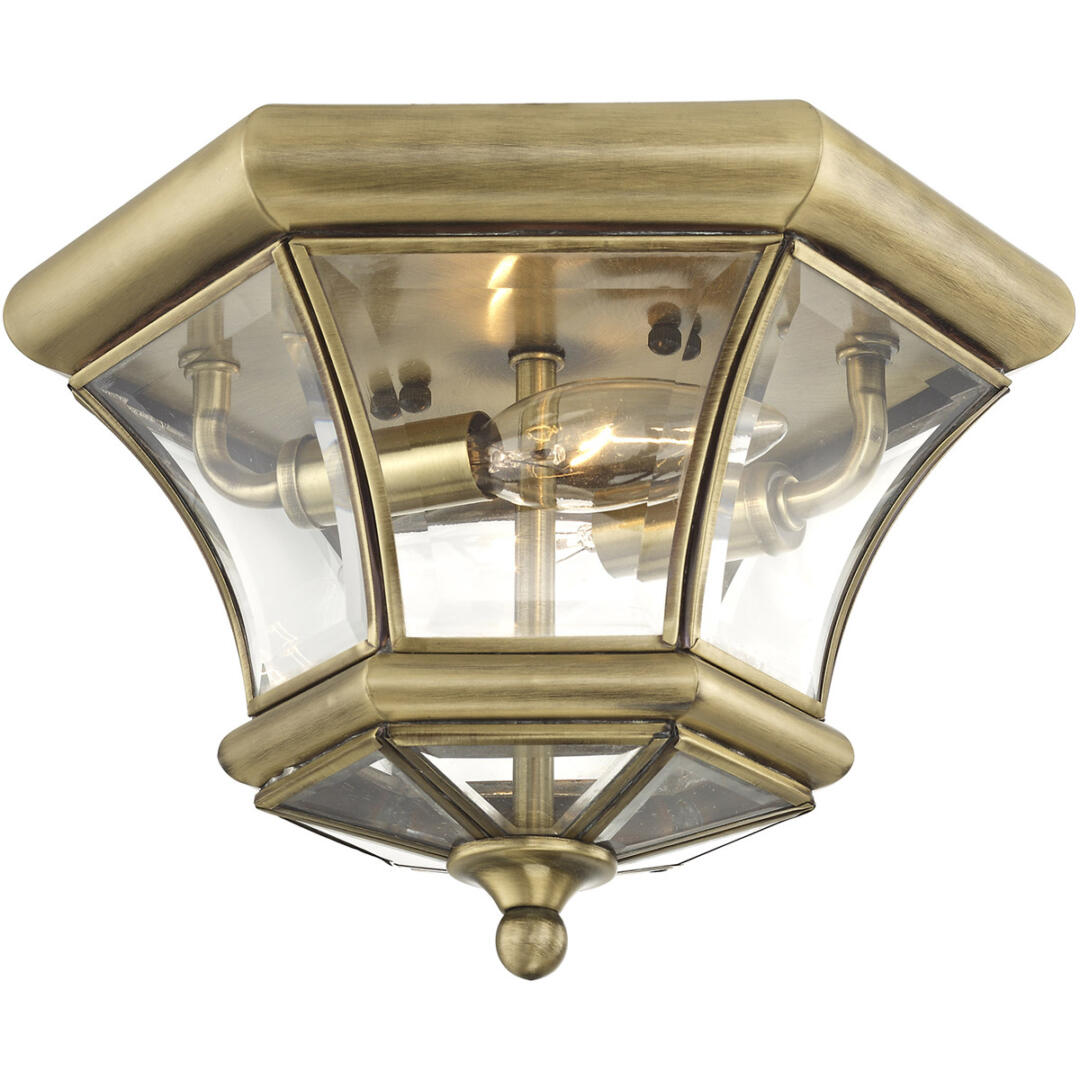 This outdoor ceiling mount lantern features clean, crisp lines complemented by the graceful curves of glass. Handsome colonial styling makes this fixture a perfect addition to your outdoor spaces. Crafted from sturdy solid brass.