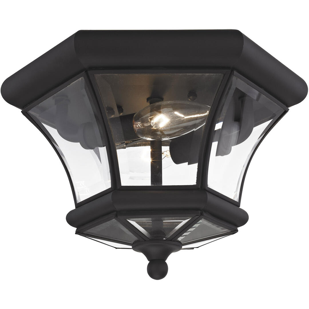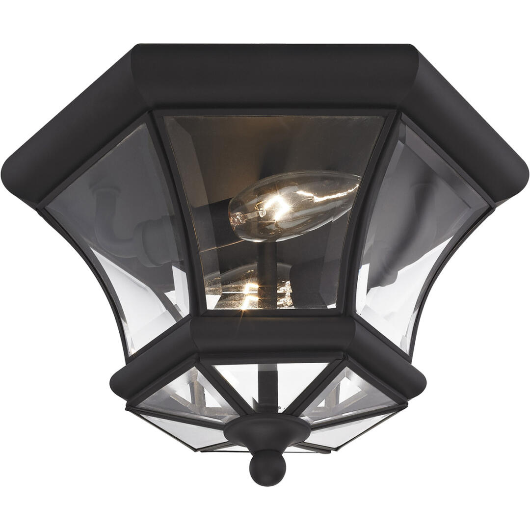 2 Light Black Ceiling Light fixture with Clear Beveled Glass Shade-Lighting Lumens