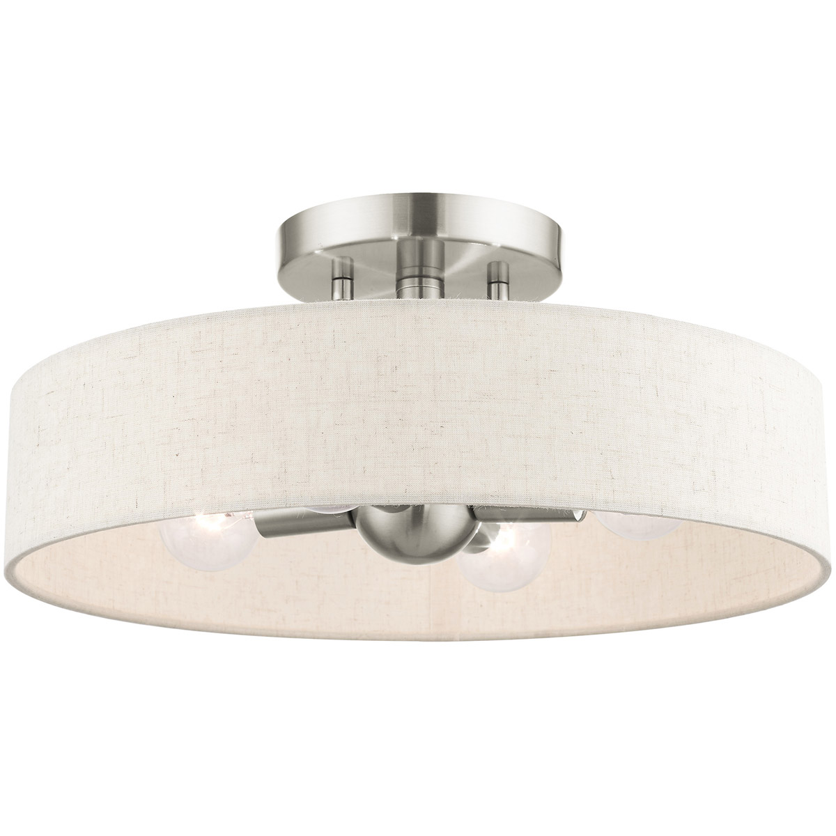 4 Light Brushed Nickel Semi Flush Mount with Hand Crafted Oatmeal Fabric Hardback Shade-Lighting Lumens