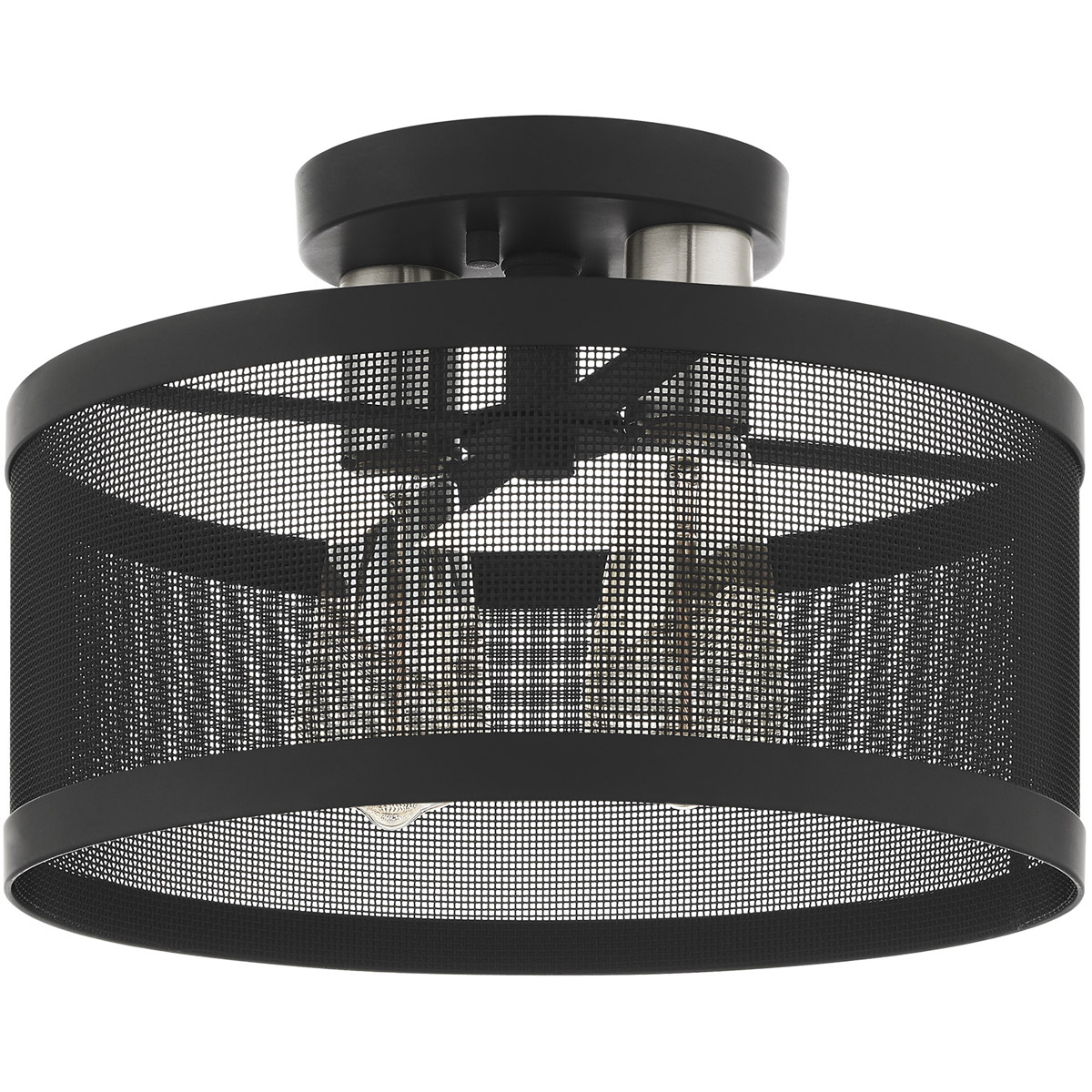 The Industro collection has a clean, crisp look and contemporary appeal. This two-light small semi-flush has a black finish with brushed nickel finish accents and a sleek stainless steel mesh shade. Will adapt well in the hallway, bathroom, kitchen and bedroom tastefully elevating your style.