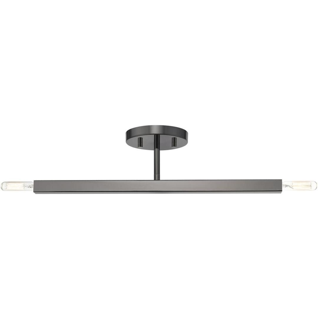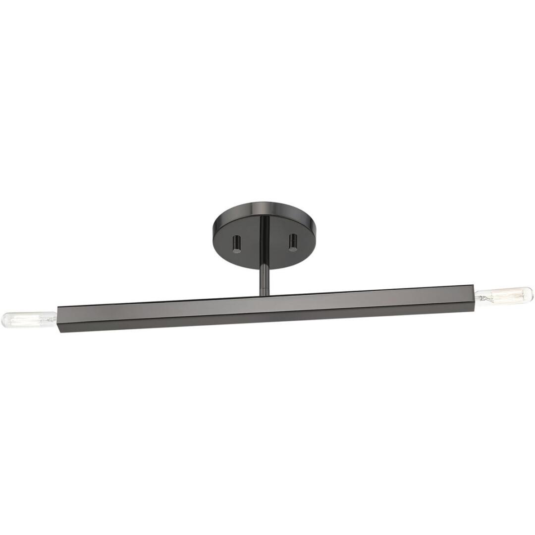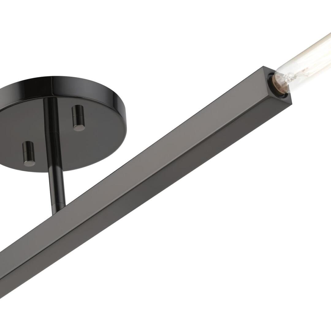 The Monaco collection inherits the multidirectional lines inspired by the Sputnik. The exposed bulbs glimmer at the end of each rectangular arm to create a touch of understated glamour for today’s modern spaces. The timeless design will add a sense of airiness and motion to any room. This two-light semi-flush would look great suspended in a living room, a modern dining room, a kitchen or a bedroom. It is presented in a black chrome finish.