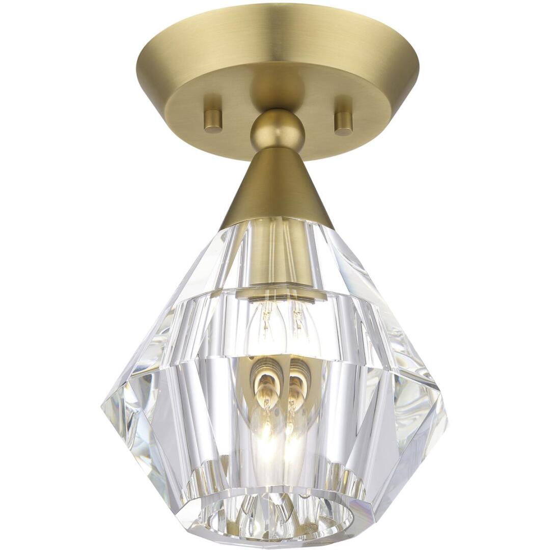 Clear faceted crystal makes an elegant appearance in this natural brass semi-flush light. The Brussels is small and attractive, and will make a dazzling impression.