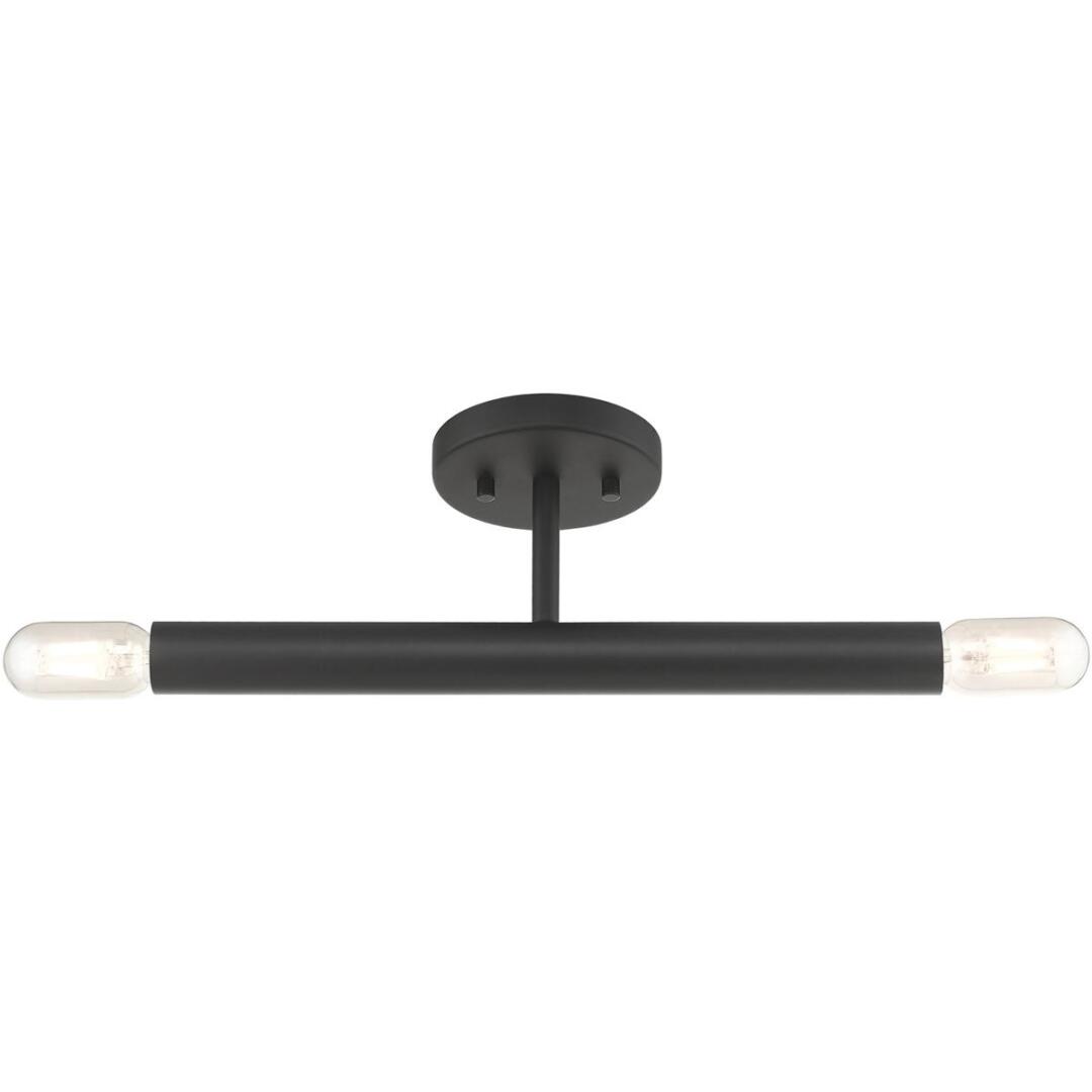 Exposed bulb sockets are fixed over the black finish to create an eclectic look perfect for mid century modern or transitional spaces wanting an industrial touch.