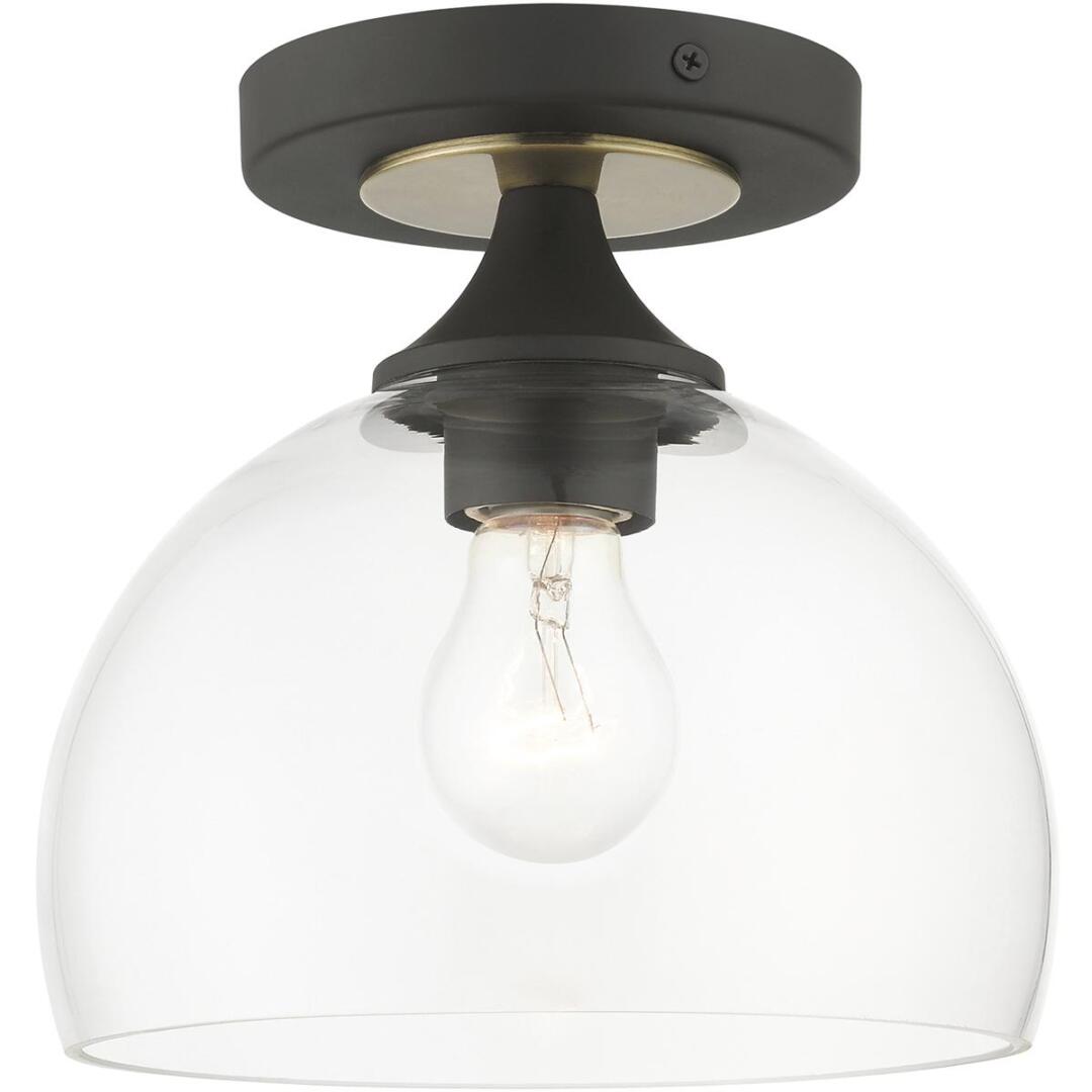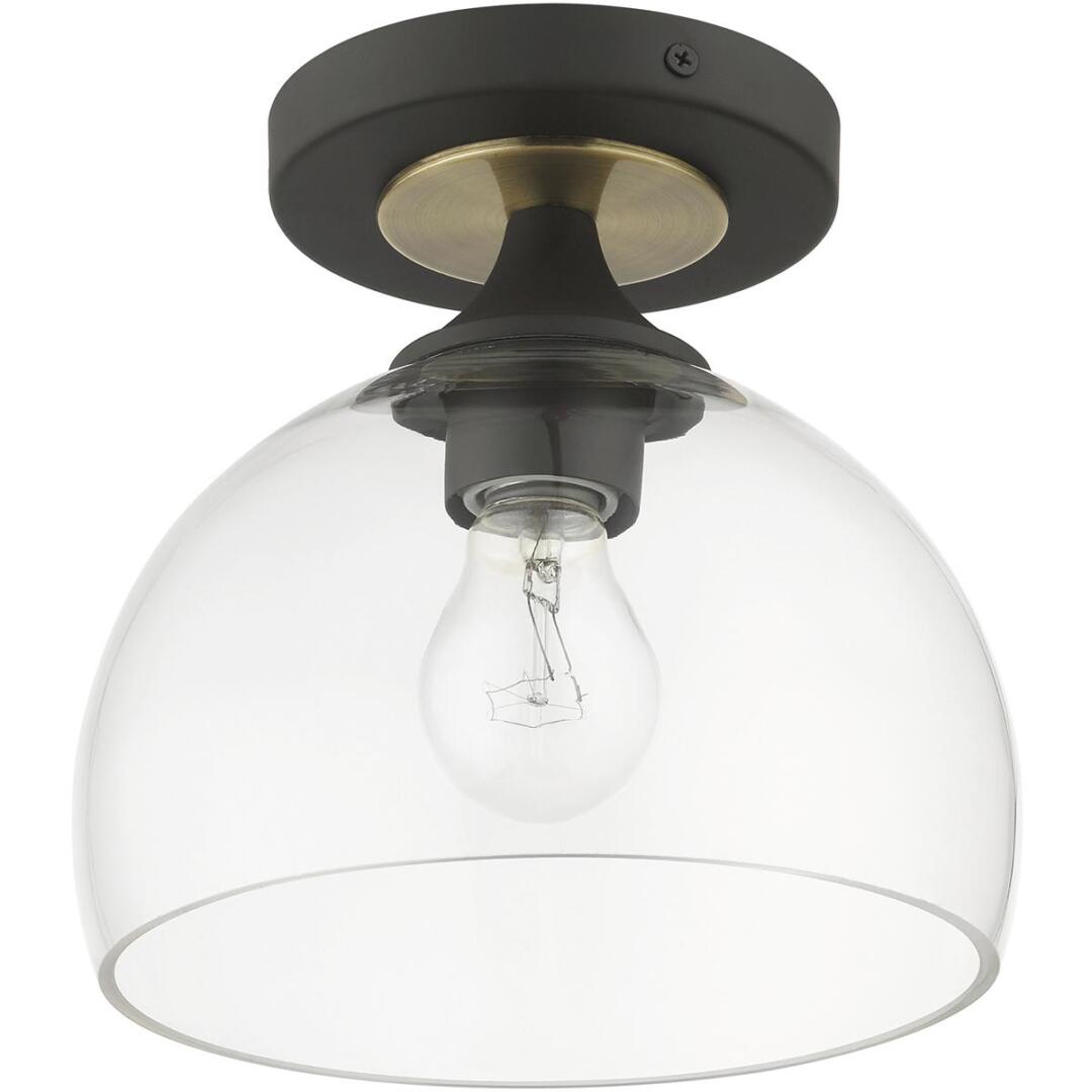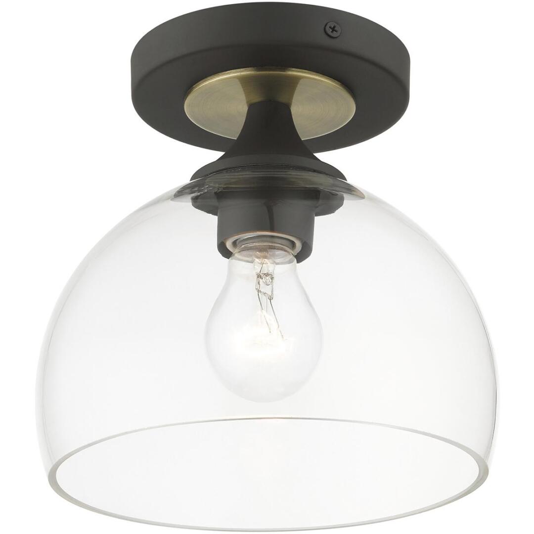 This one light semi-flush mount from the Glendon collection has understated elegance. It features minimal details, clear curved glass with a bronze finish and can fit into any decor.