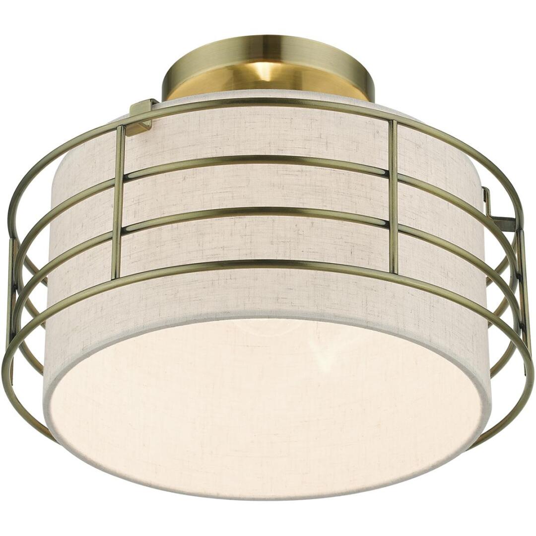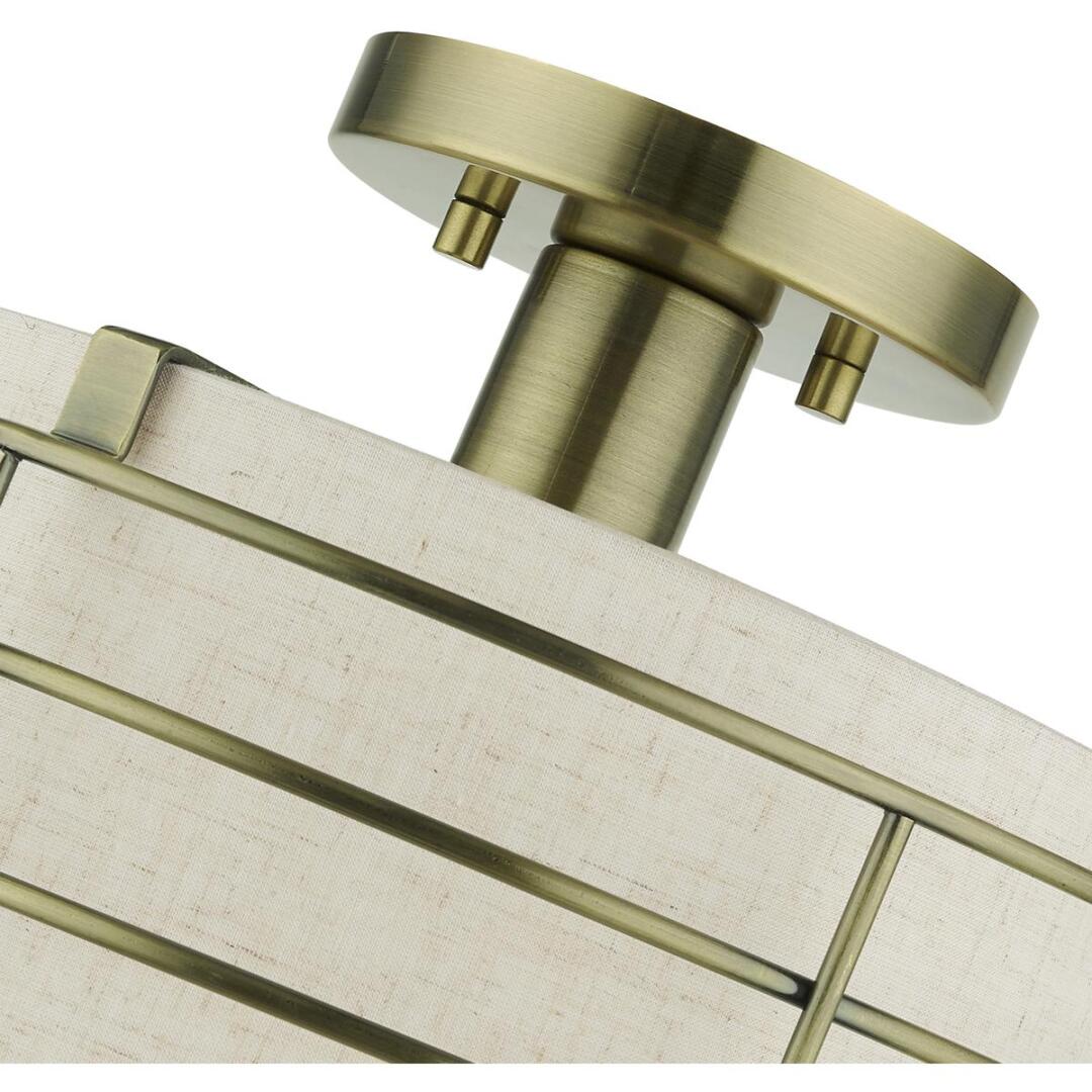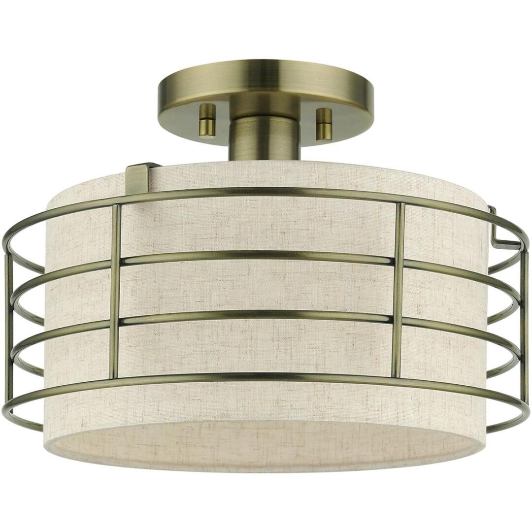 The Blanchard semi-flush mount adds refined style and a hint of mystery to your décor. The antique brass finish and an oatmeal handcrafted hardback shade create warm illumination, while soft light brings to life the intricate fretwork pattern. This small one-light semi flush mount will add a sophisticated and glamorous look to almost any interior design style. It will work great in the hallway, kitchen, bathroom or a small bedroom.