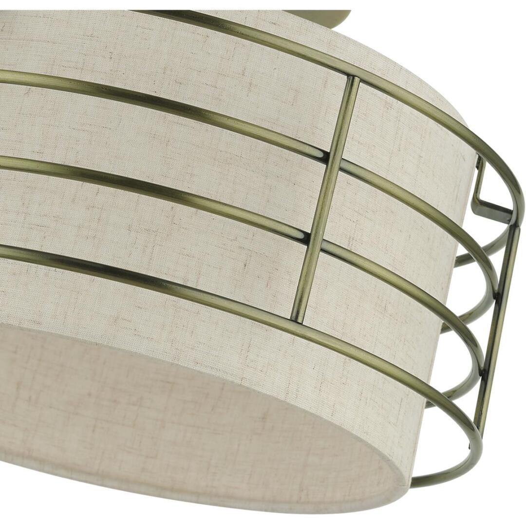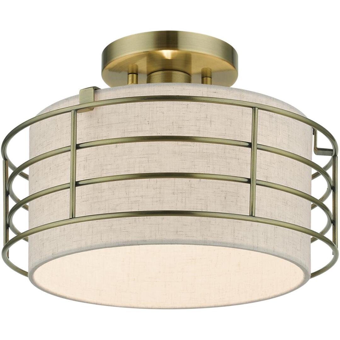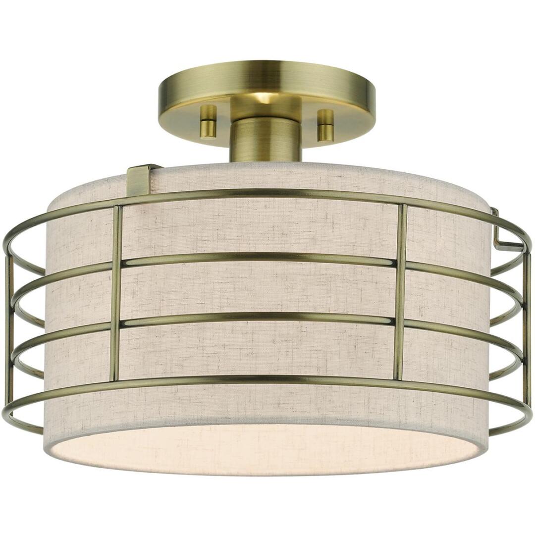 The Blanchard semi-flush mount adds refined style and a hint of mystery to your décor. The antique brass finish and an oatmeal handcrafted hardback shade create warm illumination, while soft light brings to life the intricate fretwork pattern. This small one-light semi flush mount will add a sophisticated and glamorous look to almost any interior design style. It will work great in the hallway, kitchen, bathroom or a small bedroom.