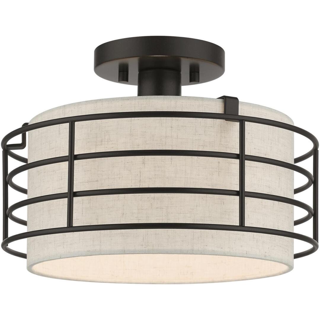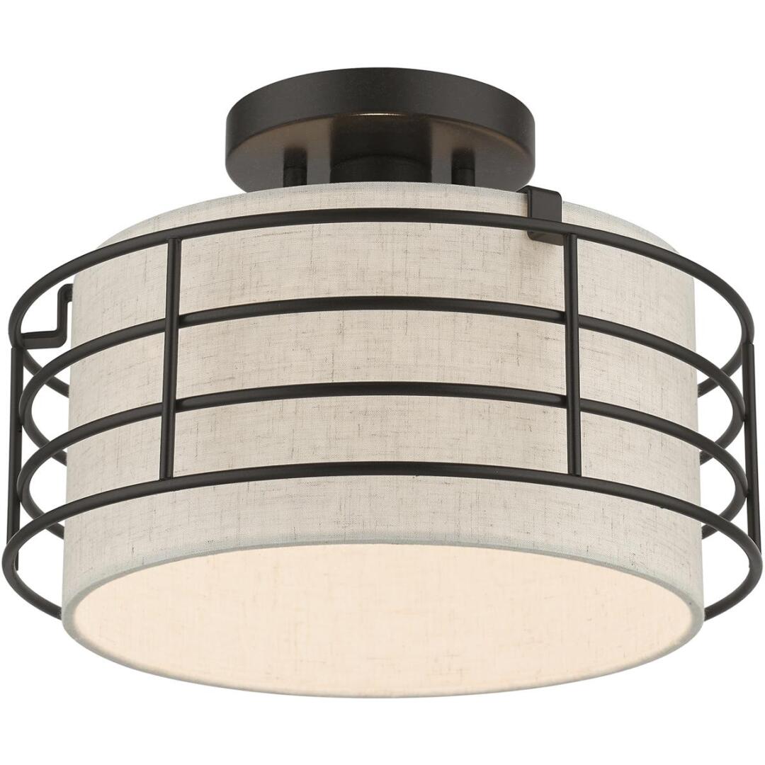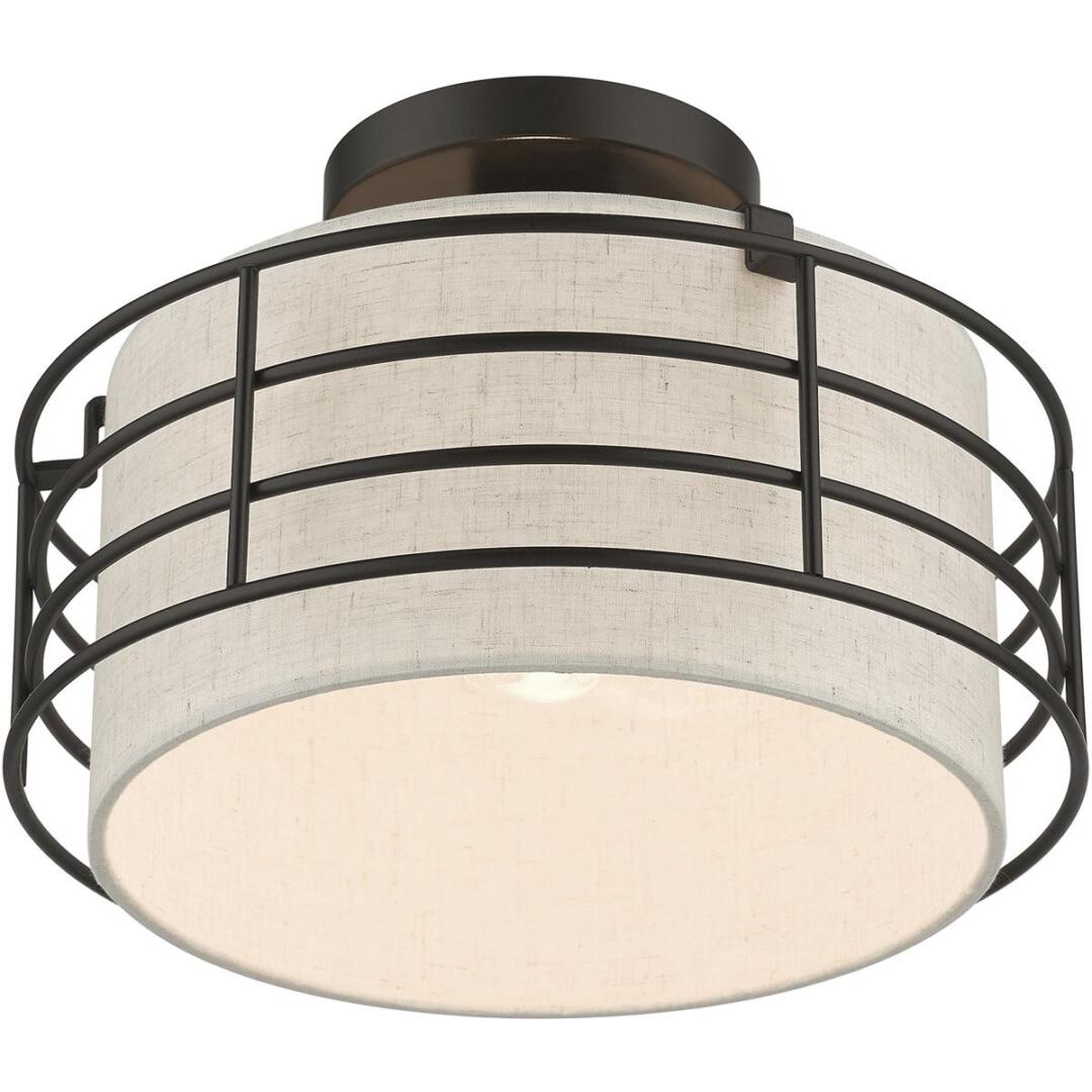 The Blanchard semi-flush mount adds refined style and a hint of mystery to your décor. The english bronze finish and an oatmeal handcrafted hardback shade create warm illumination, while soft light brings to life the intricate fretwork pattern. This small one-light semi flush mount will add a sophisticated and glamorous look to almost any interior design style. It will work great in the hallway, kitchen, bathroom or a small bedroom.