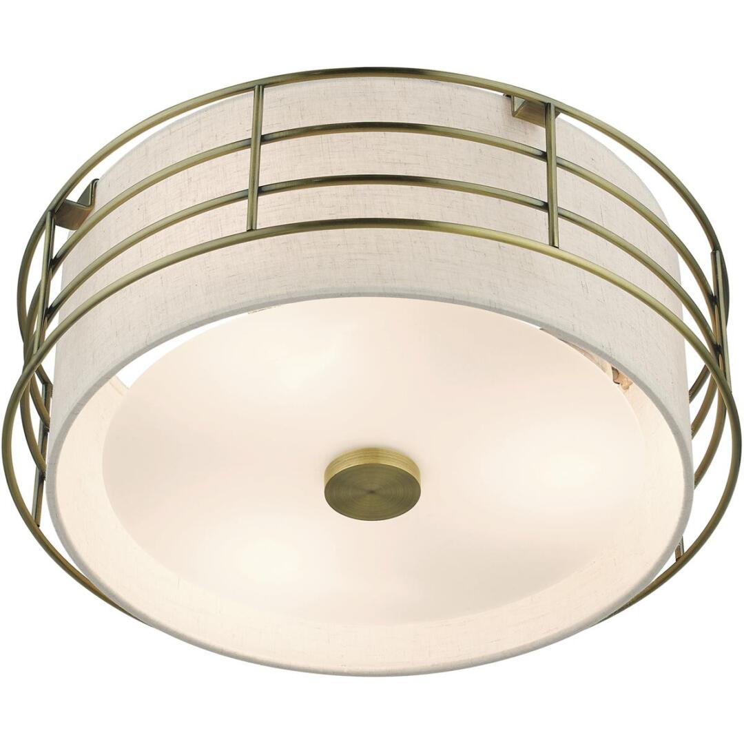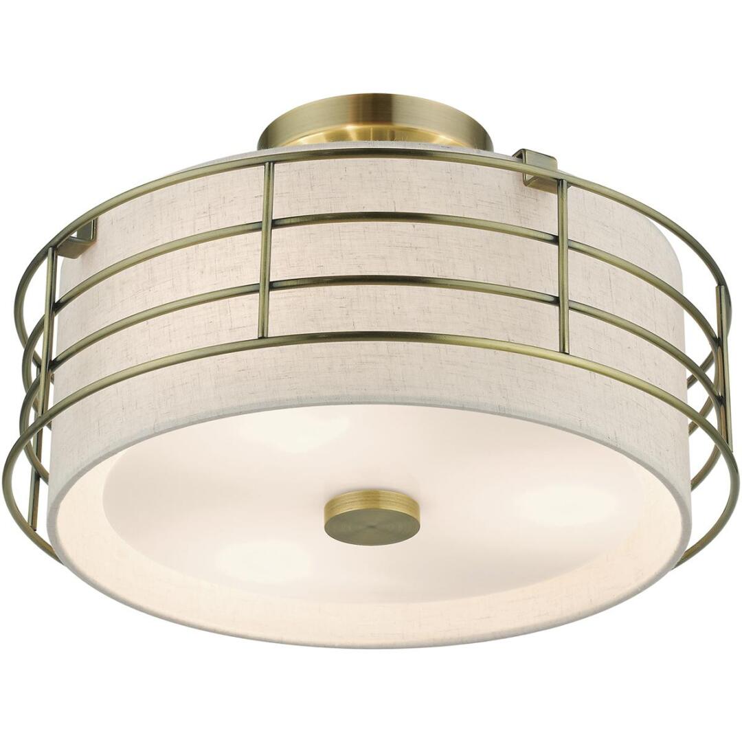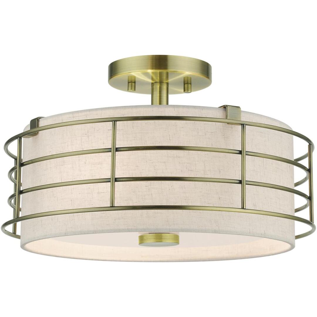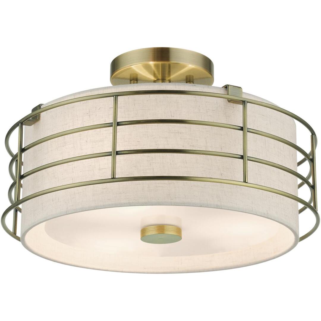 The Blanchard semi-flush mount adds refined style and a hint of mystery to your décor. The antique brass finish and an oatmeal handcrafted hardback shade create warm illumination, while soft light brings to life the intricate fretwork pattern. This medium three-light semi flush mount will add a sophisticated and glamorous look to almost any interior design style. It will work great in the living room, hallway, over the dining or kitchen table and the bedroom.