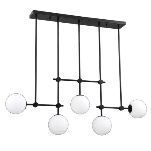 Illuminate your space with the stunning PHOENIX 5-Light Black Bar from the Kendall Lighting PHOENIX Series. This modern lighting fixture features a sleek black finish that beautifully complements the understated elegance of white glass globes. Designed to enhance any interior, the fixture’s swiveling capability allows for versatile light direction, creating the perfect ambiance for dining rooms, kitchens, or contemporary lounges. Each of the six-inch globes houses a G9 bulb with a maximum wattage of 40, ensuring a warm and inviting glow for your living spaces.