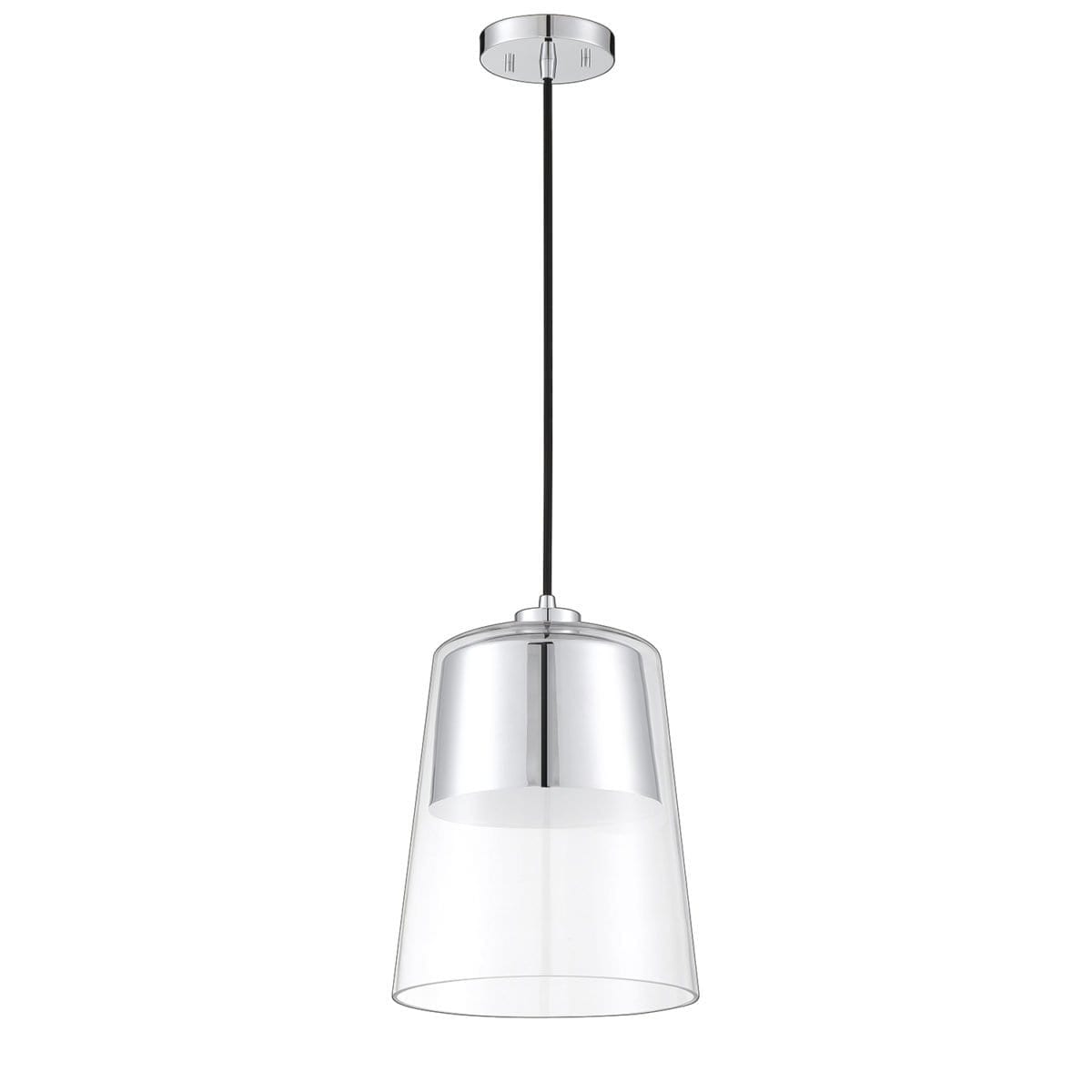 Elevate your space with the stylish CALADON 1-Light Chrome Pendant from Kendall Lighting, expertly designed to enhance any room’s ambiance. This modern pendant features a sleek chrome finish that beautifully complements its clear glass outer shade, making it the perfect addition to dining areas, living rooms, or entryways. With an overall width of 10 inches and a height of 14 inches, this pendant light is compact yet impactful, seamlessly integrating into your home décor. The fixture accommodates a single E26 medium-base bulb, allowing for a maximum wattage of 100, ensuring you have ample lighting for any setting.