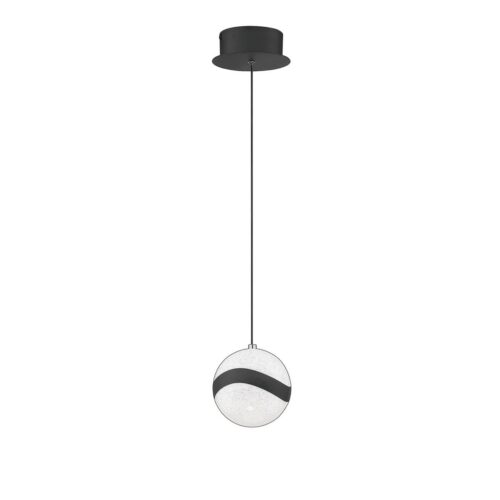 Illuminate your space with the MYSTYKE 6 in. 1-Light Black LED Pendant, a stunning addition to the Kendall Lighting MYSTYKE Series. This pendant light features a modern black (matte) finish that complements any contemporary decor while boasting a sleek 6-inch acrylic globe that diffuses warm light at a color temperature of 3000K. Designed for versatility, the adjustable overall height of up to 127 inches provides flexibility in installation, making it suitable for various ceiling heights and room layouts. The integrated LED bulb ensures energy efficiency without compromising on brightness, offering a stylish yet functional lighting solution for kitchens, dining areas, or entryways.