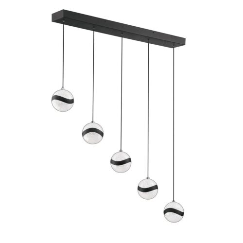Introducing the MYSTYKE 5-Light Black LED Bar from the renowned Kendall Lighting MYSTYKE Series, a stunning addition to any modern decor with its sleek black matte finish. This versatile fixture boasts an overall height of 85 inches, which is adjustable to fit your space perfectly, and a width of 36 inches that makes it an eye-catching centerpiece for dining rooms, living areas, or commercial settings. Emitting a total of 30 watts through five integrated LED bulbs, this energy-efficient lighting solution not only enhances your environment with brilliant illumination but also offers long-lasting performance, reducing the need for frequent bulb replacements.