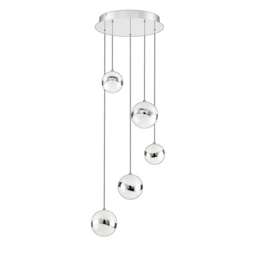 Introducing the MYSTYKE 5-Light Chrome LED Pan from the innovative MYSTYKE Series, a perfect blend of modern design and functionality that enhances any space with elegance. Finished in a sleek chrome, this stunning light fixture features five integrated LED bulbs that provide bright and energy-efficient illumination, making it an ideal choice for living rooms, dining areas, or office spaces. With an overall height adjustable up to 126 inches and a width of 18 inches, the MYSTYKE light integrates seamlessly into various interior styles, offering both versatility and sophistication. The acrylic globes add a contemporary touch, diffusing light gracefully and creating a warm, inviting ambiance.