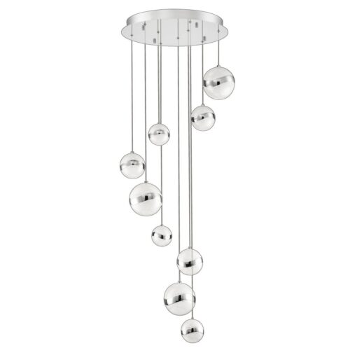 Crafted from durable metal and featuring stunning acrylic globes, the MYSTYKE 9-Light LED Pan not only illuminates your space but also serves as a captivating centerpiece. The acrylic shade material enhances the diffusion of light, creating a warm and inviting atmosphere in your home or office. Ideal for dining areas, living rooms, or entryways, this modern chandelier effortlessly elevates your décor while providing reliable and beautiful lighting. Illuminate your life with the sophisticated charm and functionality of the MYSTYKE 9-Light Chrome LED Pan, perfect for those who appreciate both modern design and practical innovation.