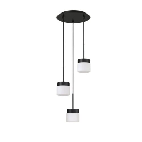 Discover the elegance of the NUON 3-Light Black Pan Kendall Lighting NUON Series, designed to elevate your interiors with its sophisticated aesthetic. This stunning fixture features a sleek black finish that beautifully contrasts with the white glass shades, creating a striking visual effect in any room. With an overall height of 122 inches and a width of 12 inches, this versatile light source is perfect for illuminating dining areas, living spaces, or entryways. It operates with three G9 bulbs, each with a wattage of 25, providing ample brightness while ensuring energy efficiency. The durable metal construction guarantees longevity, making it a reliable choice for any home decor.
