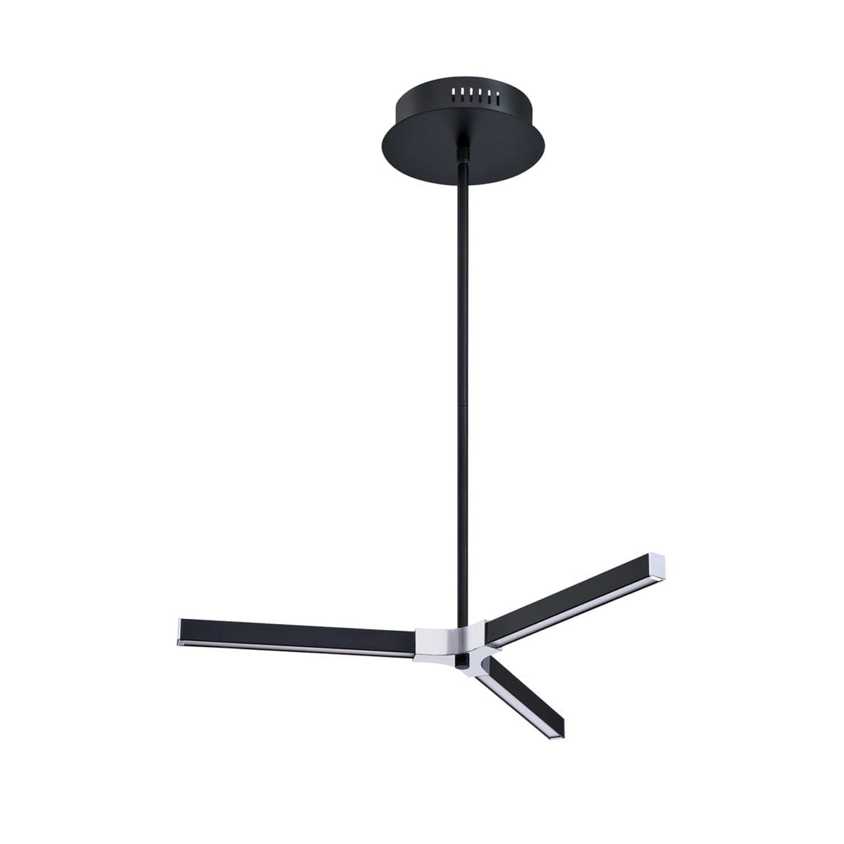 Elevate your space with the STYKX 3-Light LED Pendant from Kendall Lighting, a stunning addition to the STYKX Series that seamlessly combines modern design with exceptional functionality. Featuring a sleek Black & Chrome finish, this pendant light offers a sophisticated aesthetic that complements contemporary interiors. With an integrated 16W LED bulb providing 600 lumens of bright illumination, it ensures your living or workspace is both well-lit and energy efficient. The fixture is crafted from durable metal, while the shade combines metal and acrylic for added elegance and functionality. Included swivel and extra rods (2×6 in., 2×12 in.) allow for versatile installation heights, making this pendant perfect for various ceiling types and room sizes.