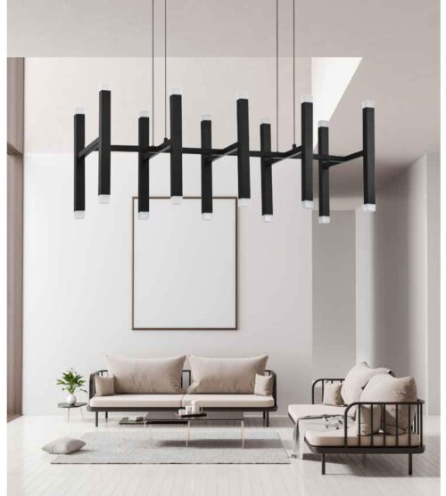 Elevate your contemporary space with the VERTICLES 20-Light LED Pendant by Kendall Lighting, a striking centerpiece that combines style and functionality. Finished in sleek black, this pendant light features 20 integrated LED bulbs, each delivering a warm color temperature of 3000K and an impressive total output of 1500 lumens. Crafted from durable metal and complemented with acrylic shades, this fixture not only enhances your interior design but also provides energy-efficient illumination. Ideal for dining areas, living rooms, or entryways, the VERTICLES series perfectly marries modern aesthetics with practical lighting solutions.