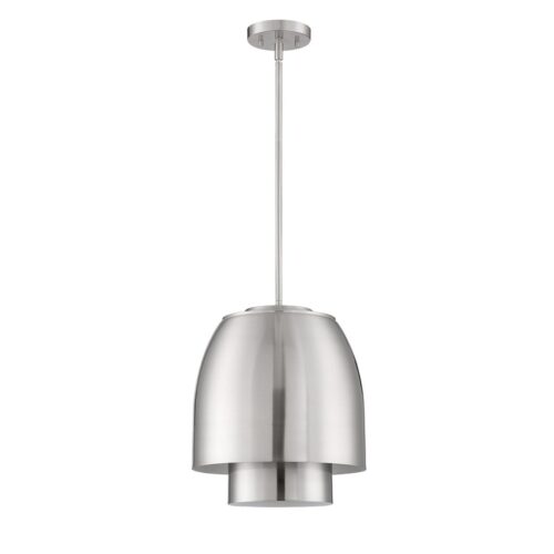 Introducing the SPRIZZO 3-Light Satin Nickel Pendant from Kendall Lighting, a stunning addition to your home decor that perfectly combines modern elegance with functional design. This exquisite pendant features a two-layer metal shade crafted in a sleek satin nickel finish, making it an ideal centerpiece for dining rooms, kitchens, or entryways. With an overall height adjustable between 17.5 inches and 53.5 inches, it provides the versatility needed for various ceiling heights, while its 12.5-inch width ensures it makes a bold statement without overwhelming your space. Designed to accommodate one A type E-26 medium base bulb with a maximum wattage of 60, the SPRIZZO pendant offers ample illumination to brighten up any area.