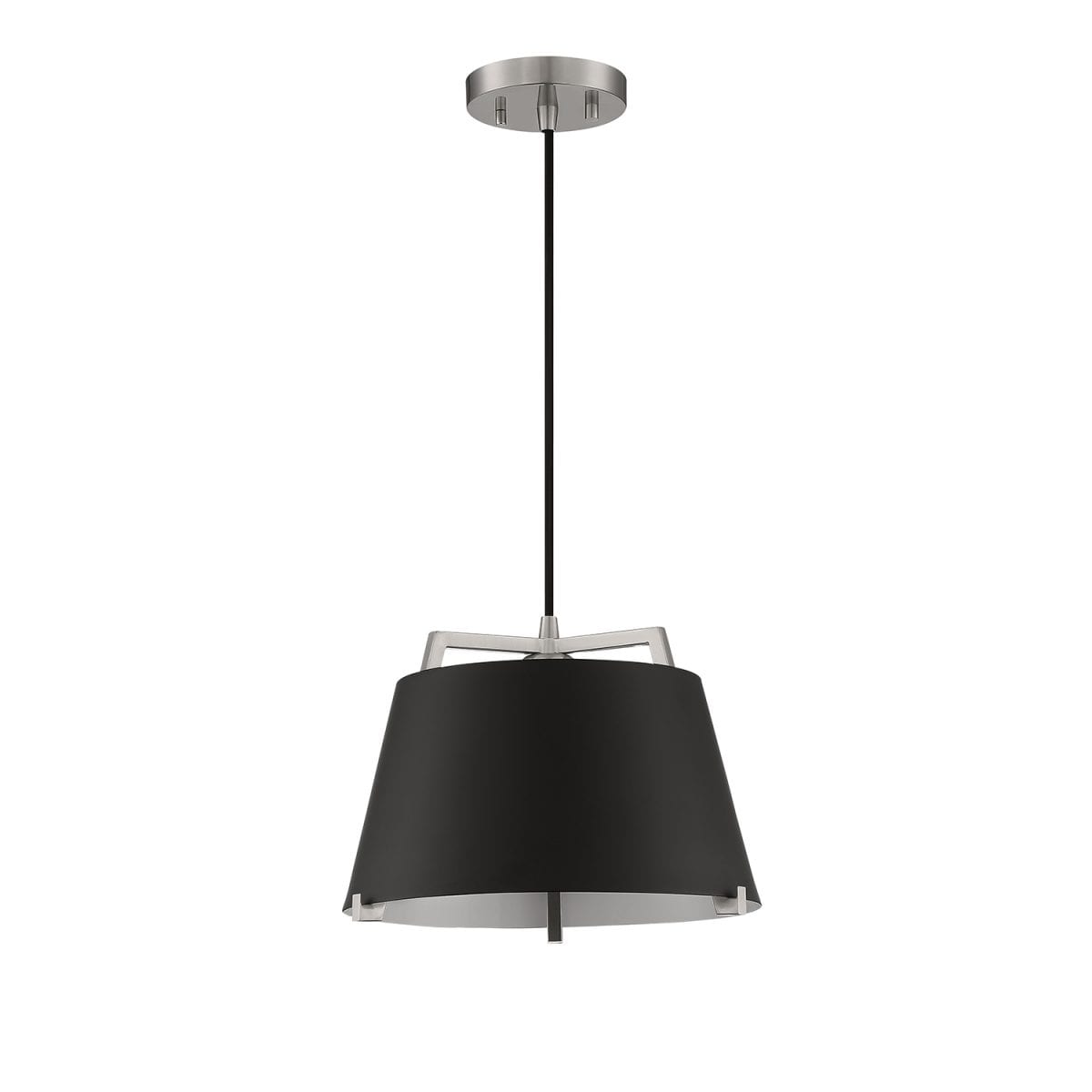 Upgrade your interior decor with the SKY 1-Light Black & Satin Nickel Pendant from Kendall Lighting’s SKY Series. This striking pendant light features a modern metal shade finished in a sophisticated black and satin nickel combination, making it a perfect addition to any contemporary space. With a shade width of 12.4 inches and a height of 9 inches, this versatile fixture provides a warm and inviting glow, while its sleek design complements various styles, from industrial to minimalist. The pendant is suspended with 10 feet of durable 3-core black braided wire, allowing for easy installation and adjustable hanging height to suit your needs.