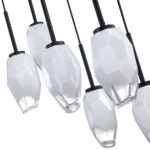 Crafted from durable steel and aluminum, the SOREN pendant light not only ensures longevity but also adds a contemporary touch to your home. Its five G9 bulbs, with a maximum wattage of 50W each, create a warm and inviting ambiance. The unique sculpted ice glass shades soften the light, resulting in a captivating glow that enhances the aesthetic appeal of any room. Illuminate your space with style and sophistication with the SOREN 5-Light Pendant Pan, where modern design meets functional elegance. Perfect for those seeking a blend of form and function, this fixture is a must-have for any stylish home.