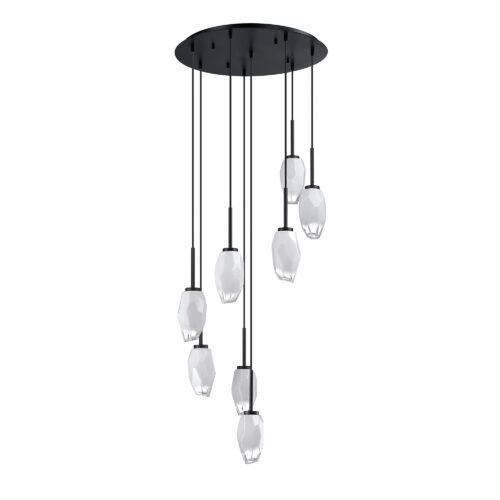 Illuminate your space with the SOREN 8-Light Pendant Pan from Kendall Lighting, an exquisite addition to any modern decor. This stunning fixture features a sleek black finish complemented by clear tipped sculpted ice glass shades, providing a captivating blend of elegance and contemporary design. Measuring 23.6 inches in overall width and 127 inches in maximum overall height, the pendant is adjustable, allowing you to customize the drop from a minimum of 15.4 inches. With eight G9 bulbs, each with a maximum wattage of 50W, this pendant not only enhances your home’s aesthetics but also offers functionality, making it perfect for dining rooms, entryways, or larger living spaces.