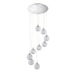 The SOLARO Series pendant is designed to accommodate nine 50W G9 bulbs, which are included for your convenience, ensuring that you have everything you need for brilliant lighting right out of the box. Constructed from high-quality metal and glass materials, this open fixture is both durable and stylish, making it a perfect addition to your home or office. Illuminate your space with contemporary flair and enjoy the harmonious blend of form and function that the SOLARO Series 9-Light Chrome Pendant delivers.