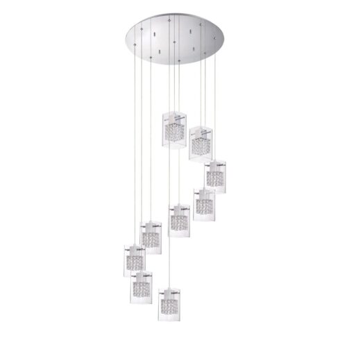 Equipped with nine 50W G9 bulbs included, this open fixture provides brilliant lighting while offering versatility in design. The craftsmanship blends metal and glass harmoniously, creating a durable yet stylish piece that is both modern and timeless. With a shade height of 7.5 inches and a width of 4.75 inches, the Politan Series pendant lamp not only serves its purpose as lighting but also as a stunning decorative element that enhances the aesthetic of any interior space. Illuminate your home with this spectacular fixture and experience the perfect mix of elegance and functionality that the Politan Series 9-Light Chrome Pendant has to offer.