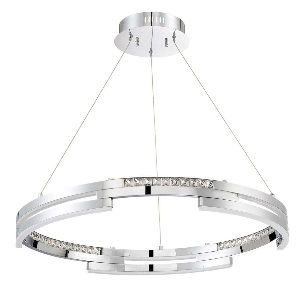 Introducing the SATERN Series 30″ LED Ring Pendant, an exquisite lighting fixture that effortlessly combines modern design with exceptional functionality. This stunning pendant light features a sleek chrome finish that complements any contemporary décor while the integrated 50-watt LED bulbs provide energy-efficient illumination. Adorned with optic crystal jewel insets, the SATERN Series pendant adds a touch of elegance to your space, making it an ideal choice for dining rooms, entryways, or open-concept living areas. Perfectly dimmable, this fixture allows you to customize the ambiance to suit your mood and environment.