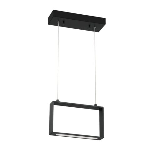 Introducing the QUADRON 1-Light Black LED Pendant from the esteemed Kendall Lighting QUADRON Series, a stunning blend of contemporary design and functionality. This small rectangular pendant light features a sleek black finish, adding a modern touch to any space. With a canopy measuring 12.5 inches in length and 4.3 inches in width, it is perfectly sized to fit various interior settings. The pendant itself showcases dimensions of 7 inches in height and 12 inches in width, making it an ideal choice for kitchens, dining areas, or entryways where understated elegance is desired. ETL tested and approved, this lighting fixture ensures both safety and quality, making it a reliable addition to your home.