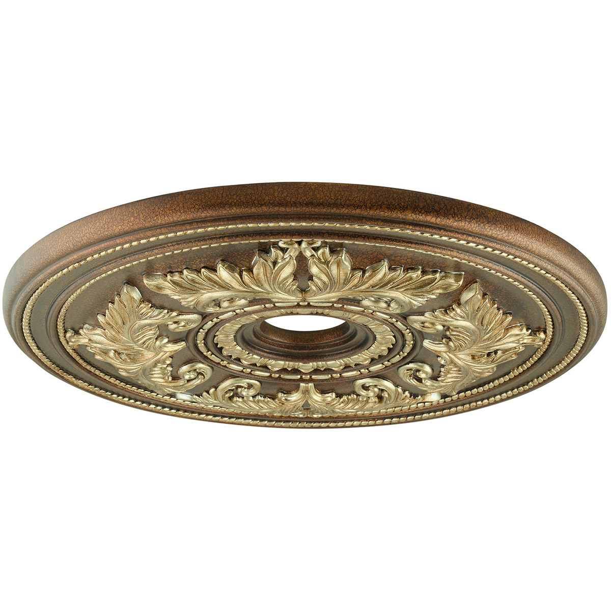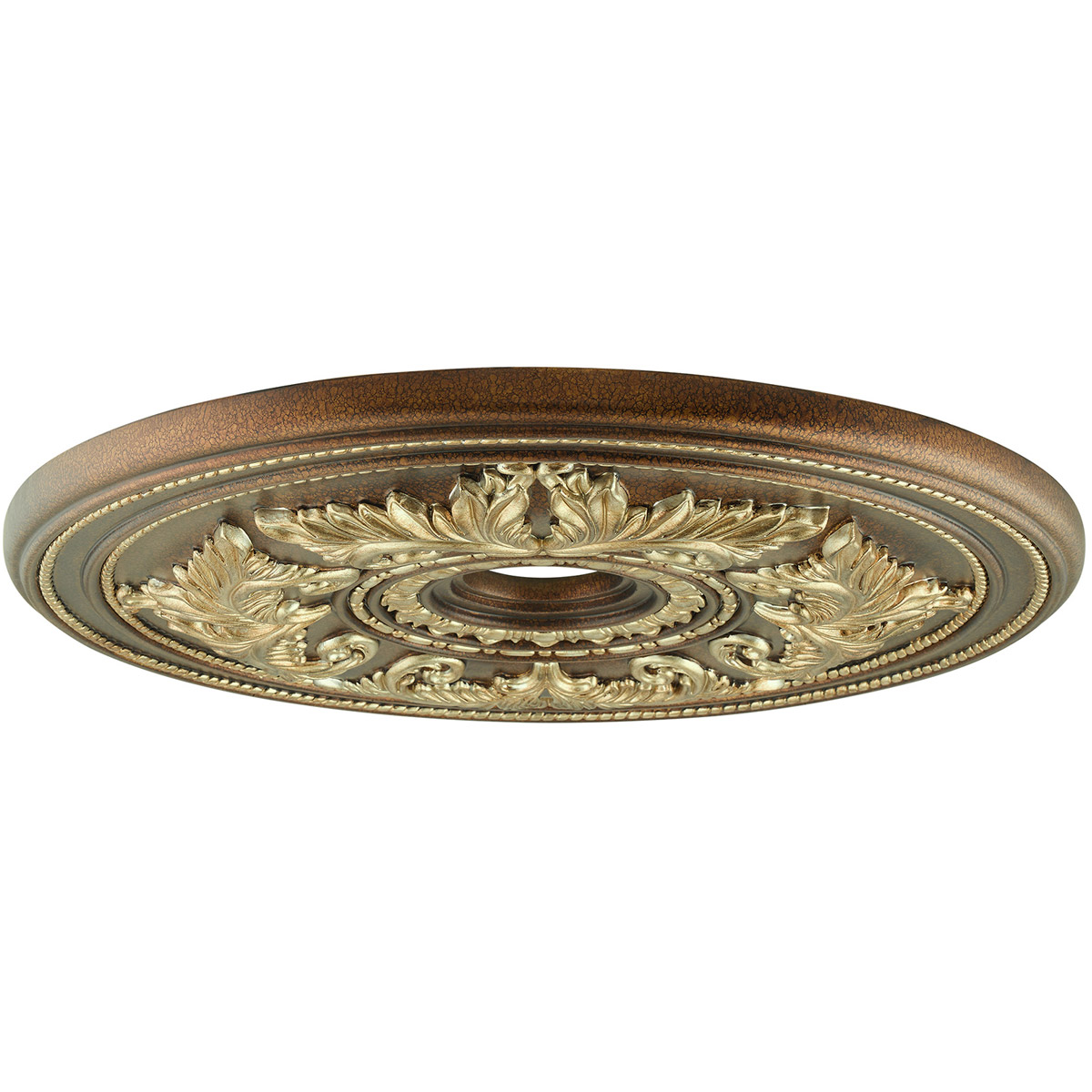 A scrolling leaf motif graces this design, while a palacial bronze finish with gilded accents offers a chic touch. Perfect for chandeliers, ceiling fans, and other fixtures.