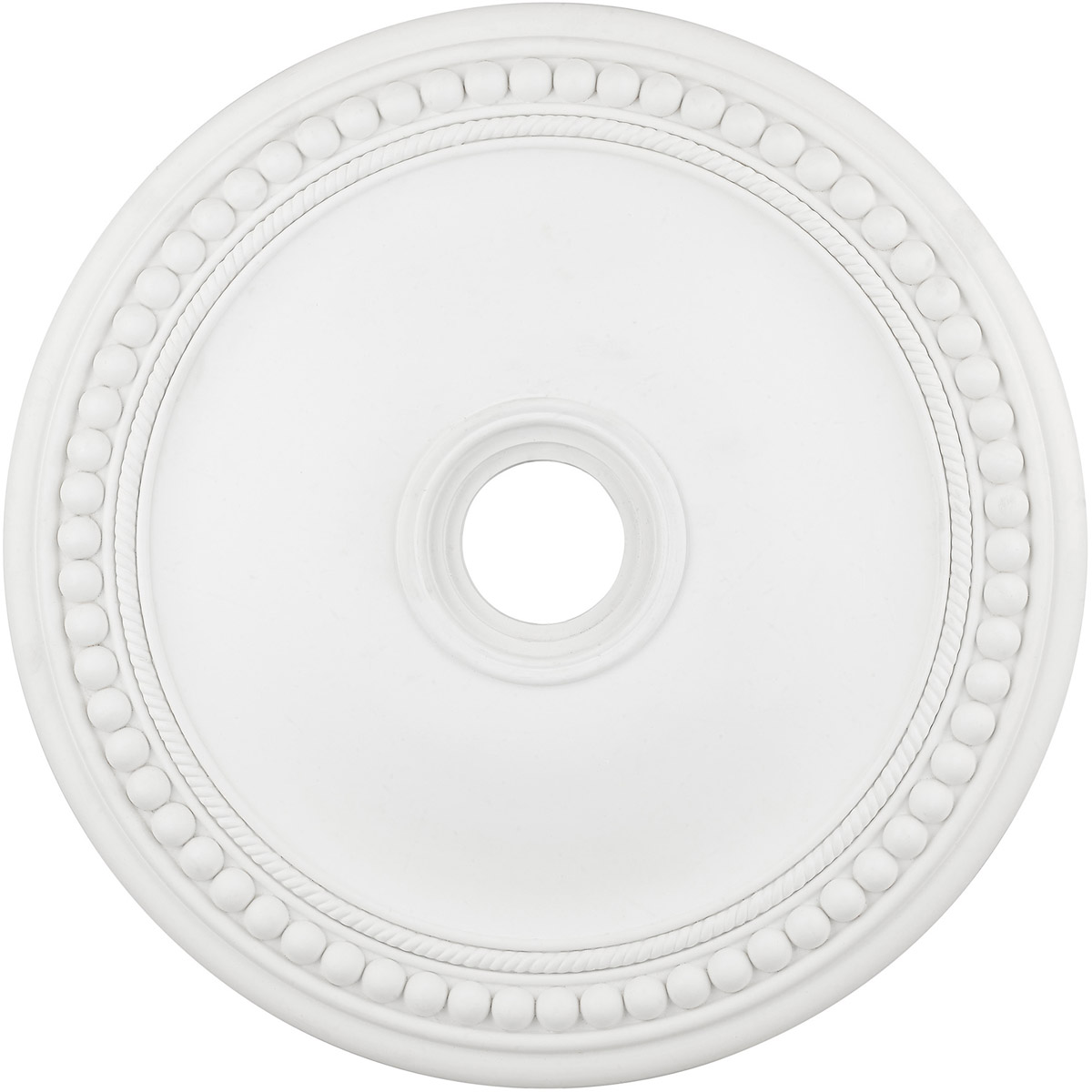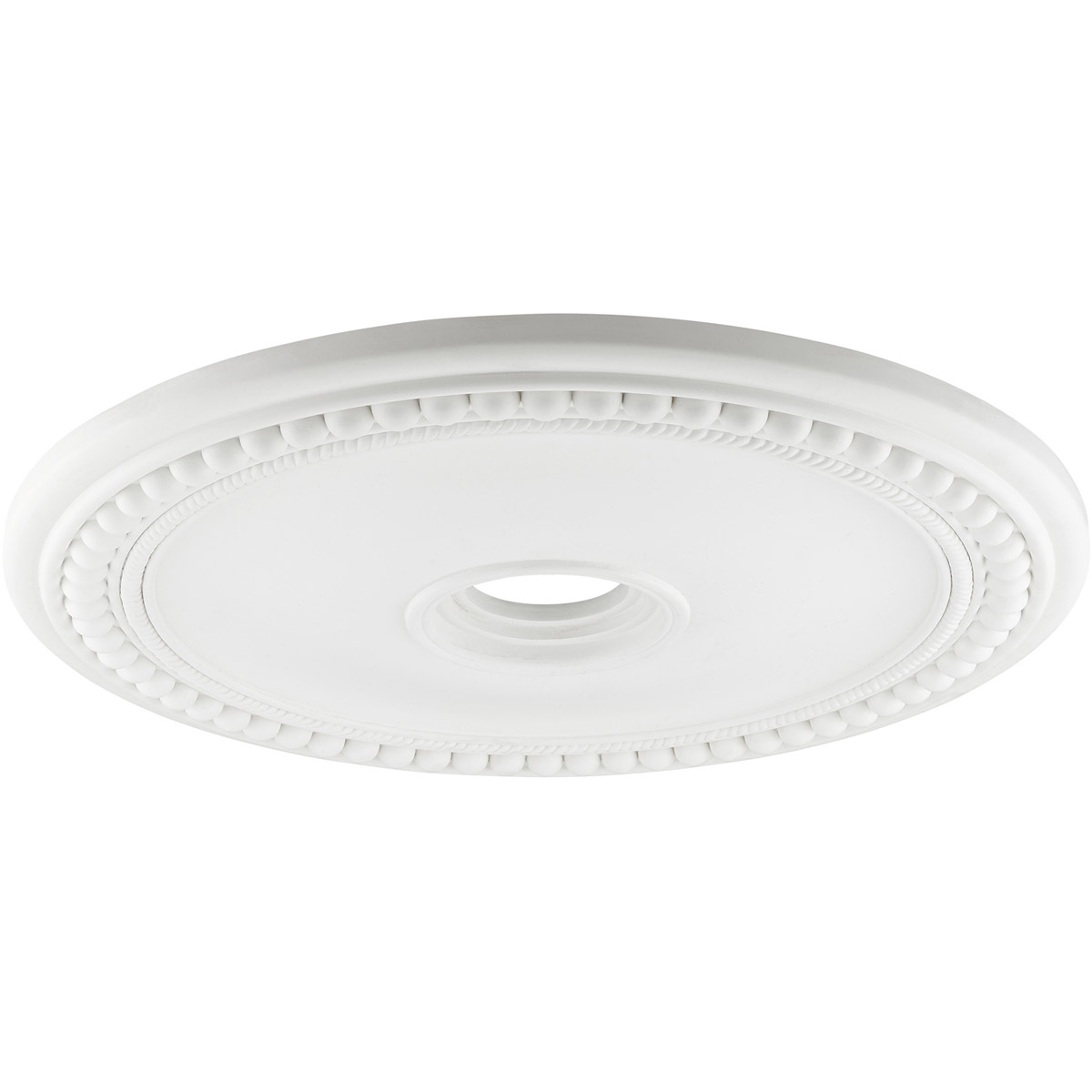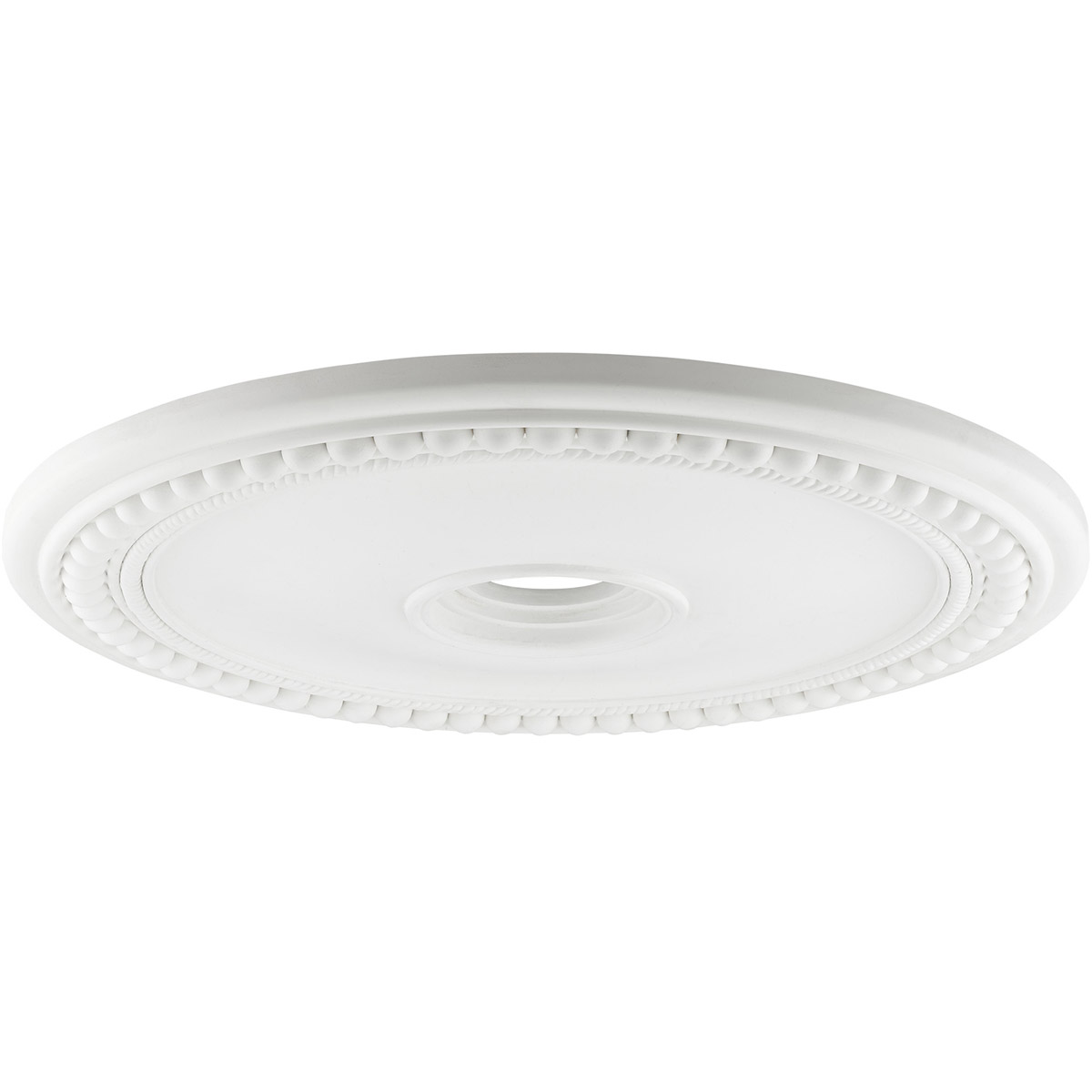 Traditional ceiling medallion in an ornate, turn-of-the-century pattern.