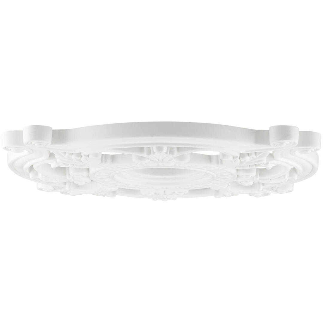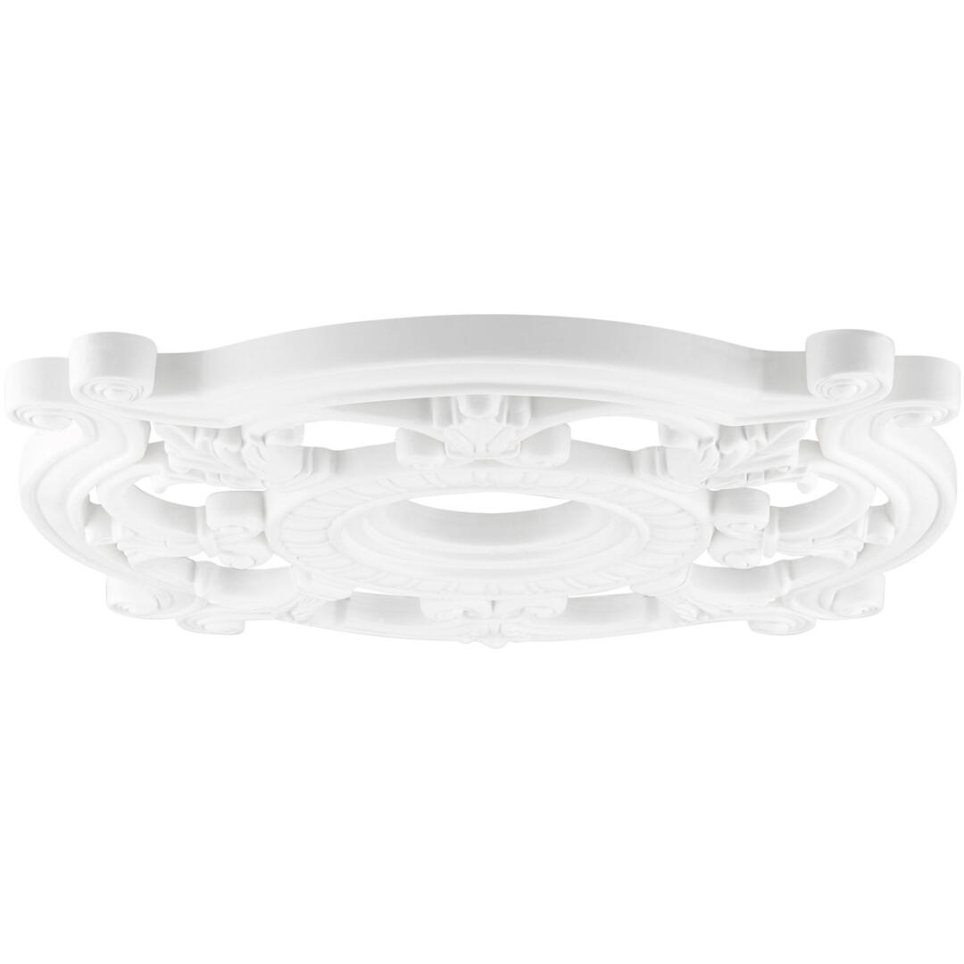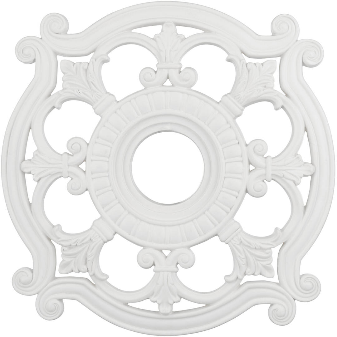 Bring an enticing new look to your ceilings and lighting fixtures with this sophisticated ceiling medallion. An openwork scrolling design adorned with a white finish adds charm, elegance, and eye-catching appeal. Perfect for chandeliers, ceiling fans, and other fixtures.