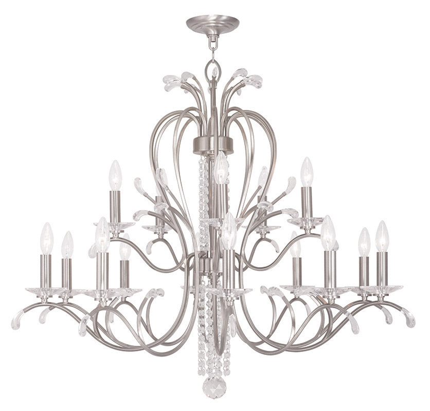 10 Light + 5 Light Brushed Nickel Chandelier with Clear Crystals Shade-Lighting Lumens