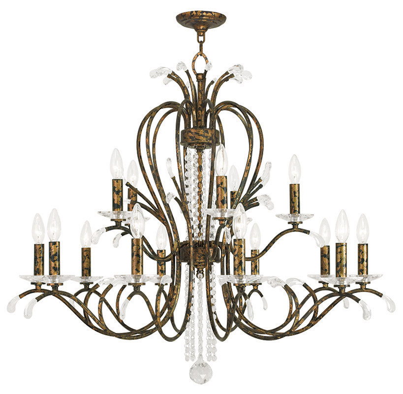 10 Light + 5 Light Verona Bronze Chandelier with Clear Crystals Shade-Lighting Lumens