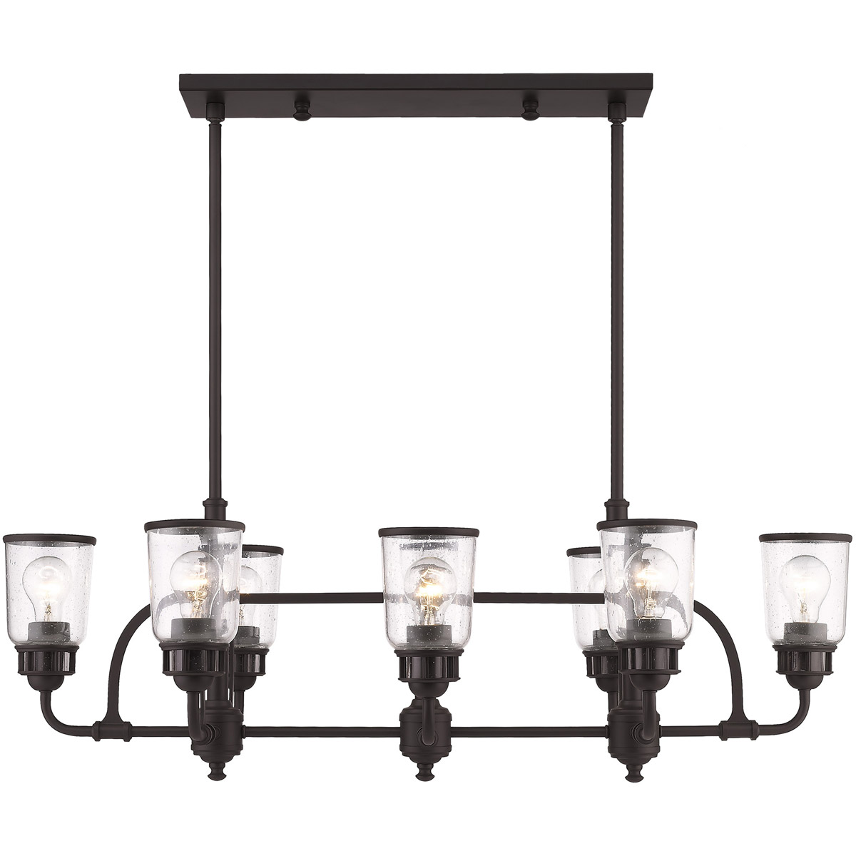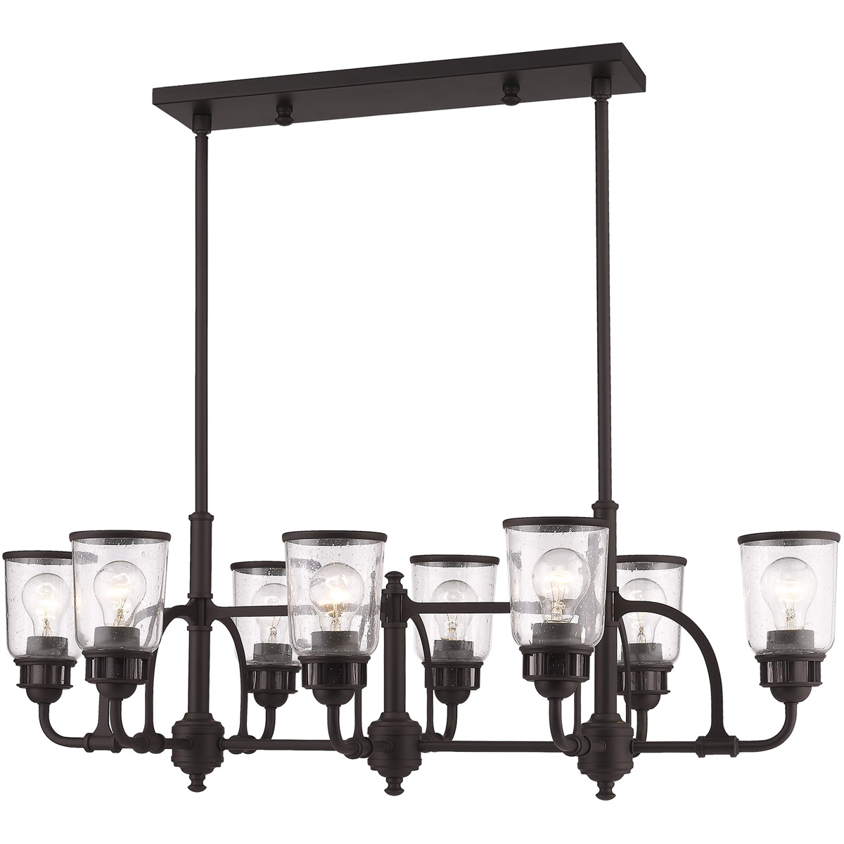 21 inch 8 Light Antique Brass Linear Chandelier with Hand Blown Clear Seeded Glass Shade-Lighting Lumens