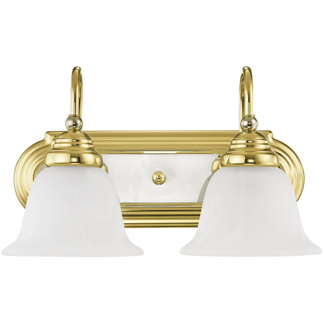 14 inch 2 Light Polished Brass & Polished Chrome Bathroom Vanity light fixture with White Alabaster Glass Shade-Lighting Lumens
