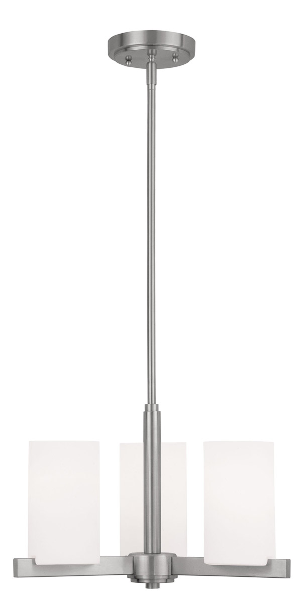 3 Light Brushed Nickel Chandelier with Hand Blown Satin Opal White Glass Shade-Lighting Lumens