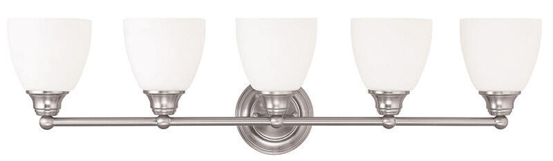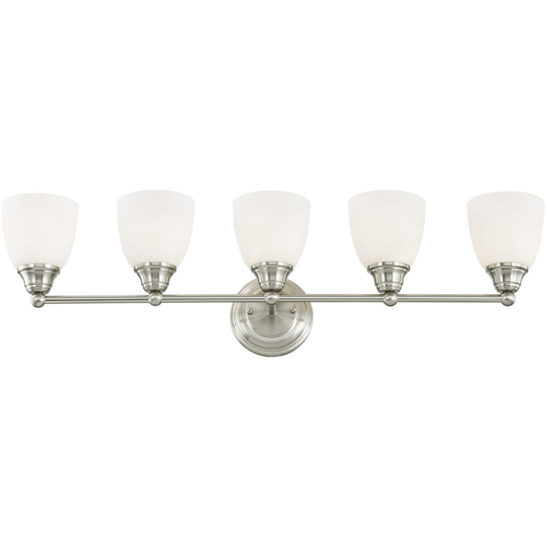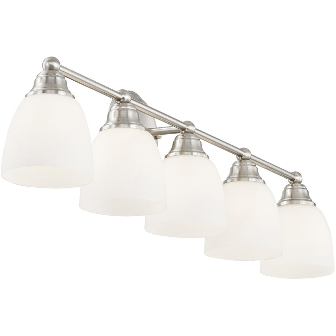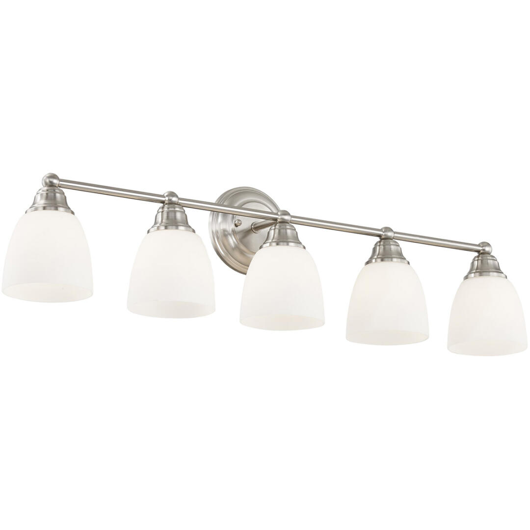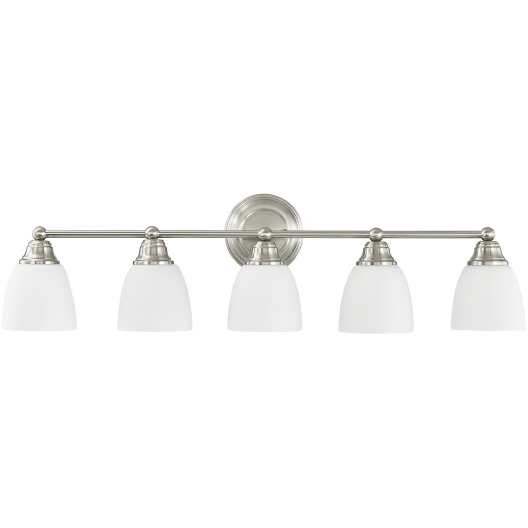 34 inch 5 Light Bronze Bathroom Vanity light fixture with Hand Blown Satin Opal White Glass Shade-Lighting Lumens