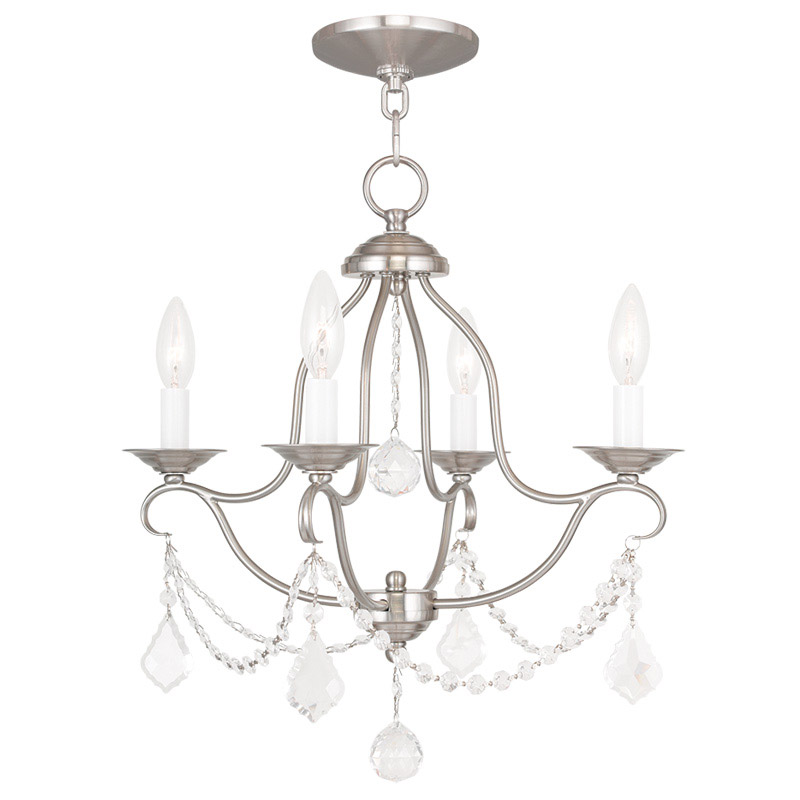 4 Light Brushed Nickel Mini Chandelier with Steel base material-Lighting Lumens
