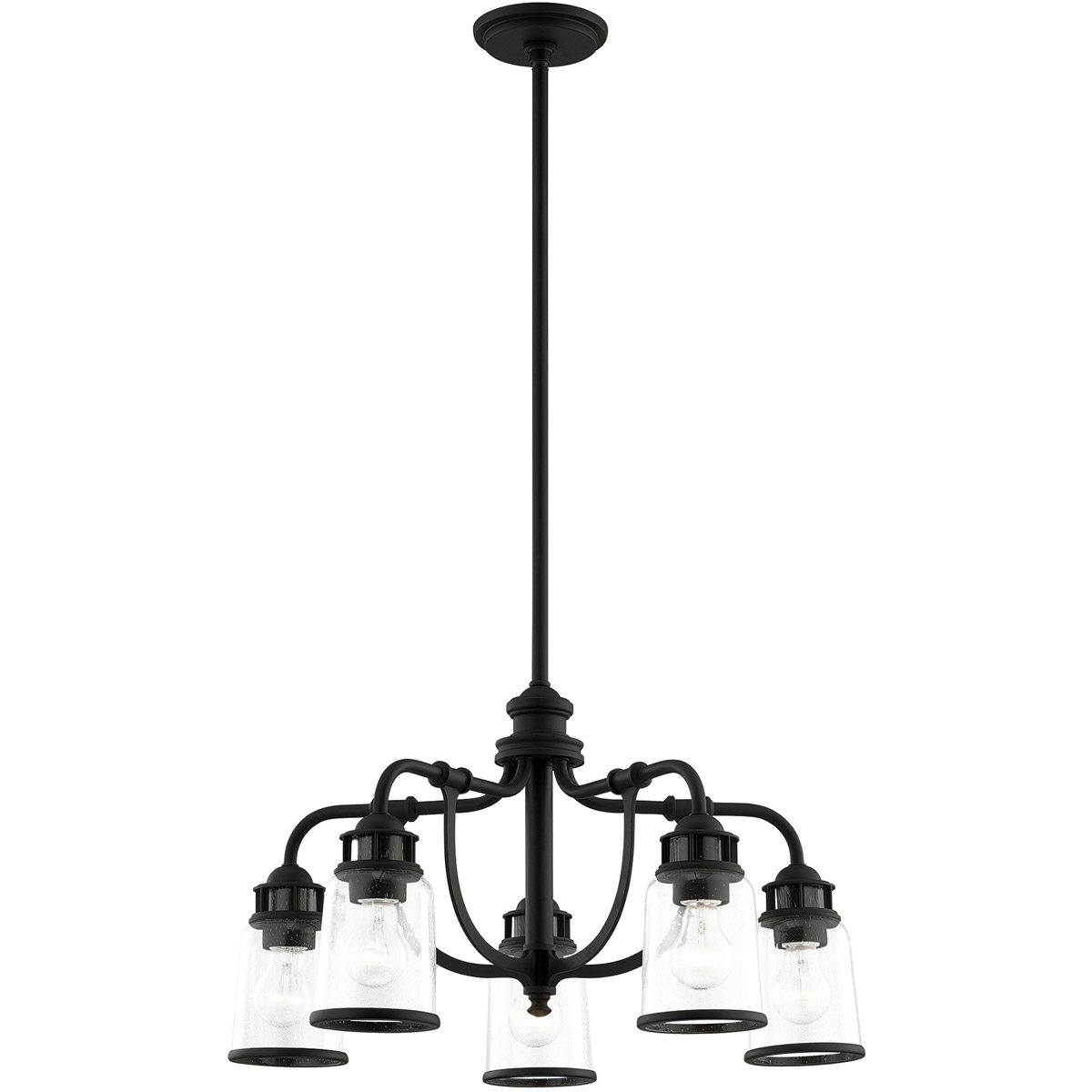 Reminiscent of turn of the 19th century lighting, the Lawrenceville collection features a retro industrial design with a black finish and a clear seeded glass.