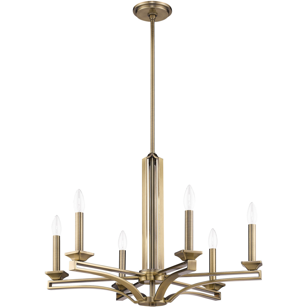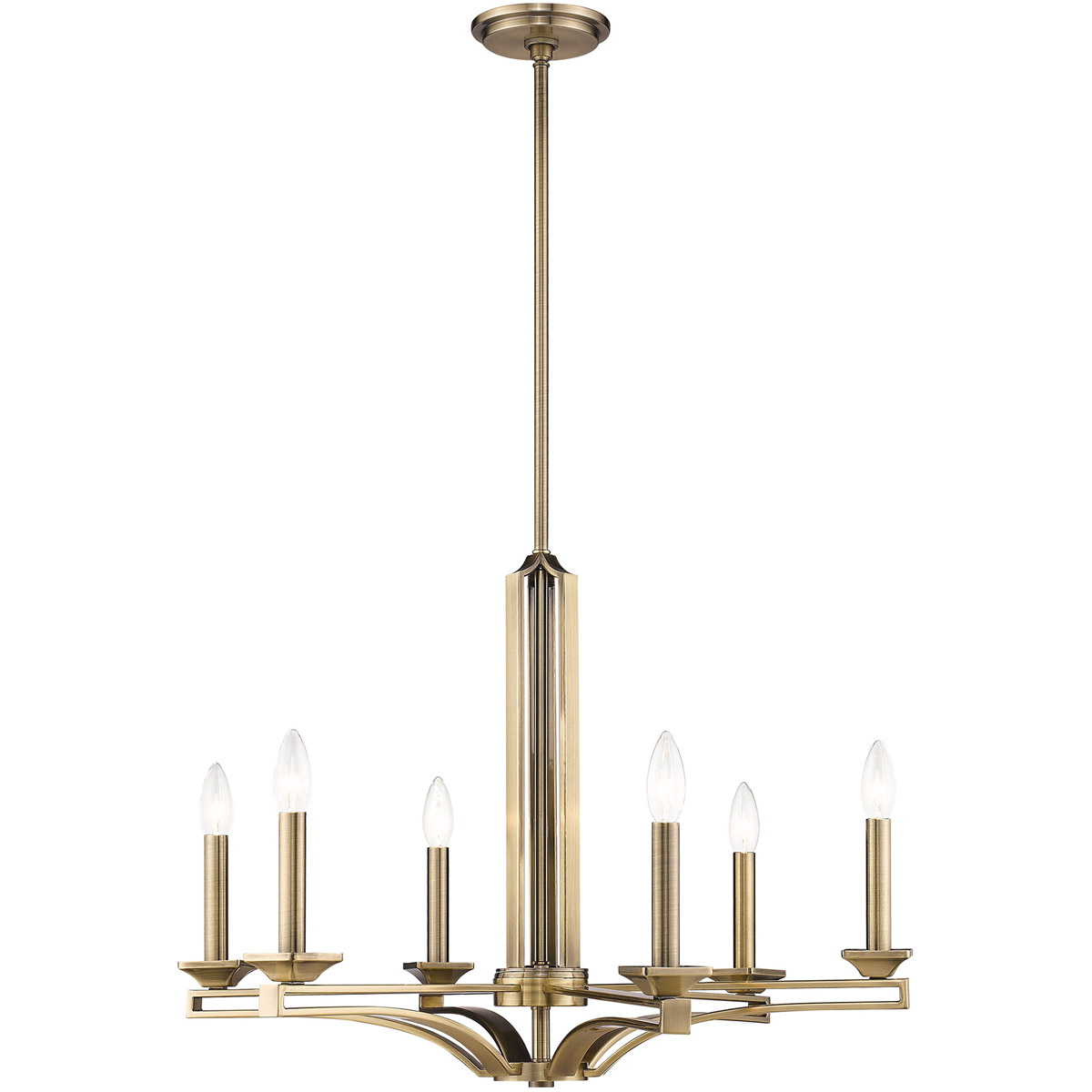 A stylish interpretation of simplicity is evident in the expansive Trumbull collection. Every element is both functional and stylish. This six light chandelier features a antique brass finish.
