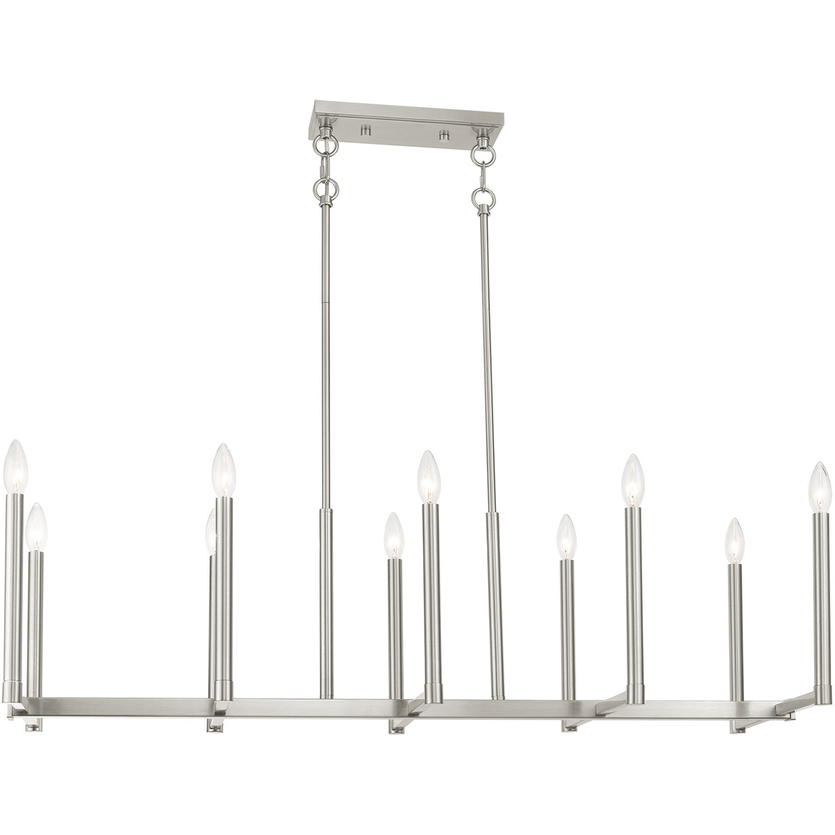 16 inch 10 Light Brushed Nickel Linear Chandelier with Steel base material-Lighting Lumens