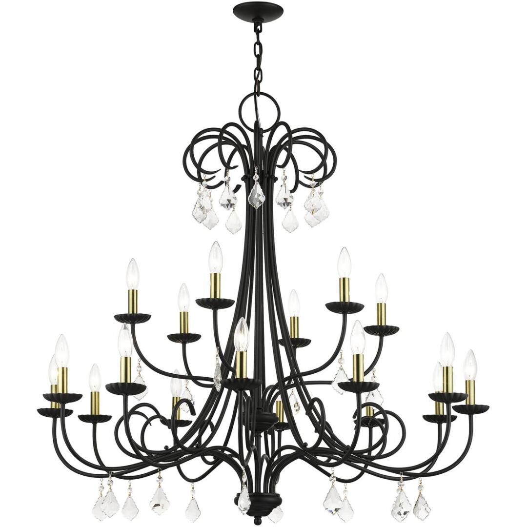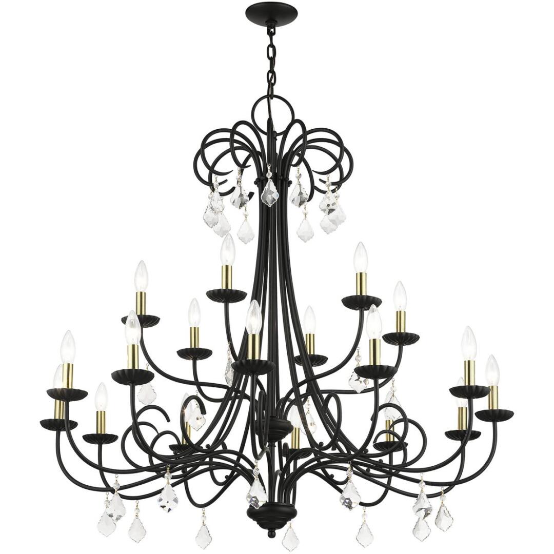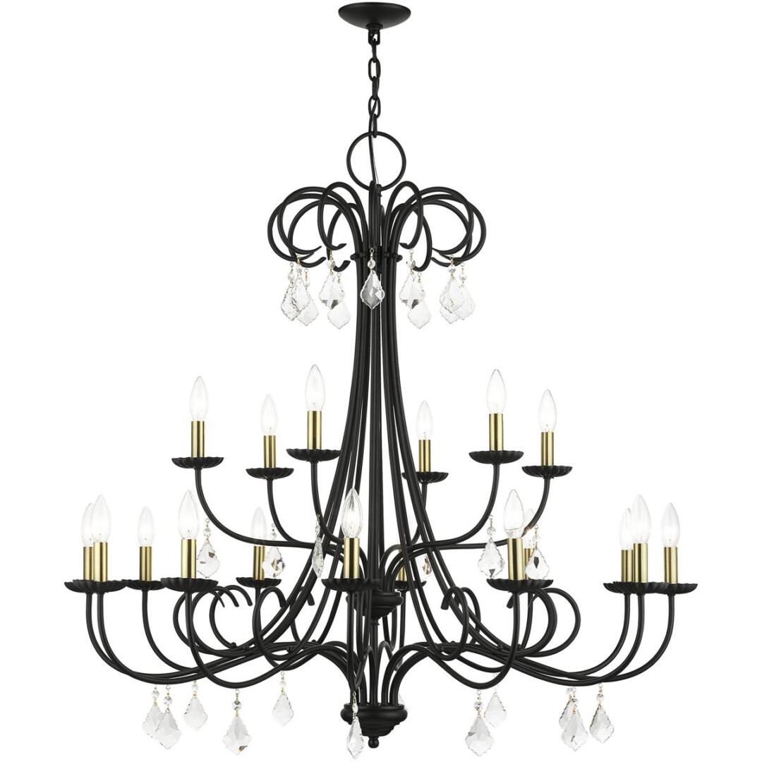 | Finish: Black with Antique Brass Finish Accents | Number of Bulb: 18 |