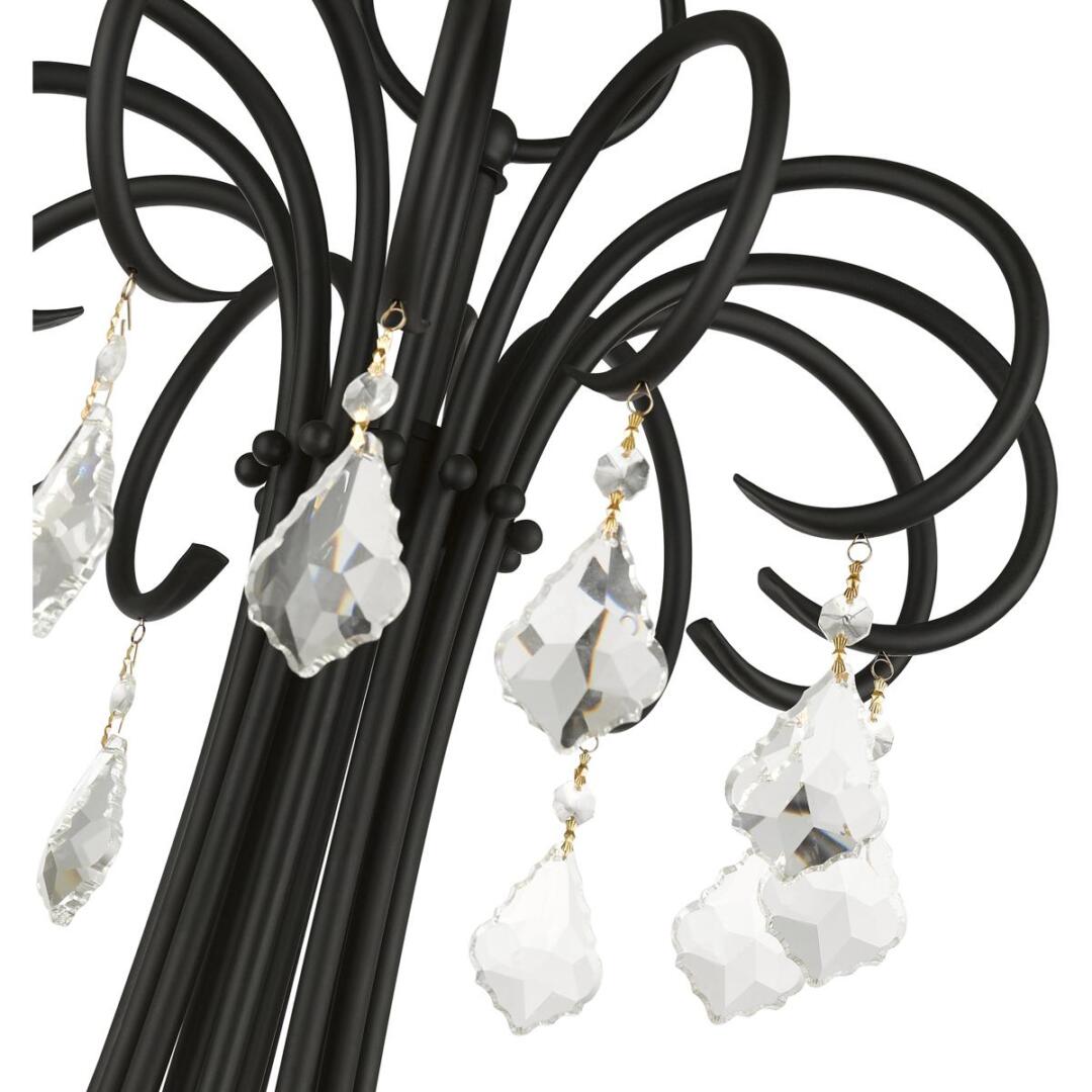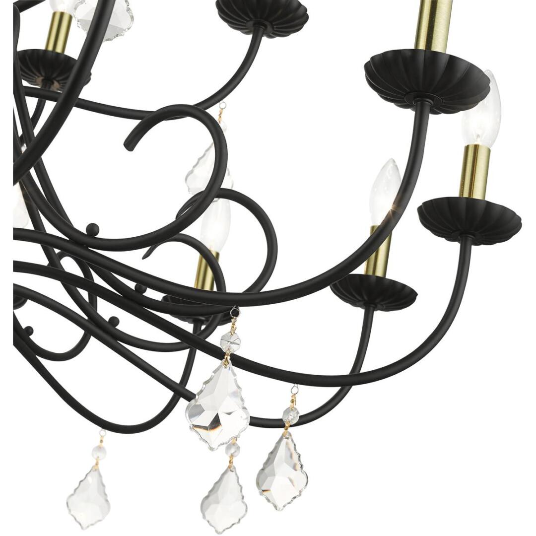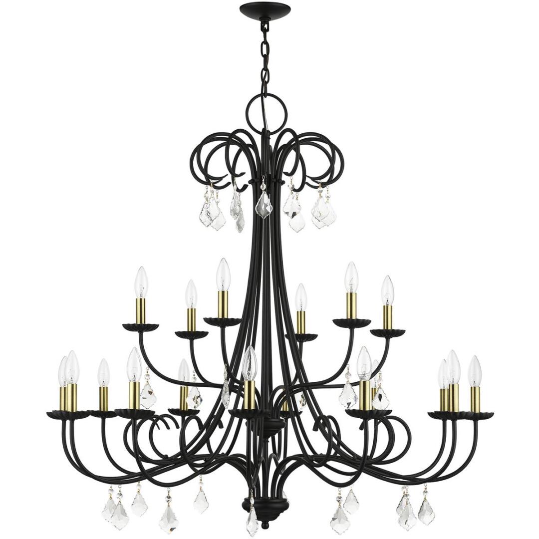 | Finish: Black with Antique Brass Finish Accents | Number of Bulb: 18 |