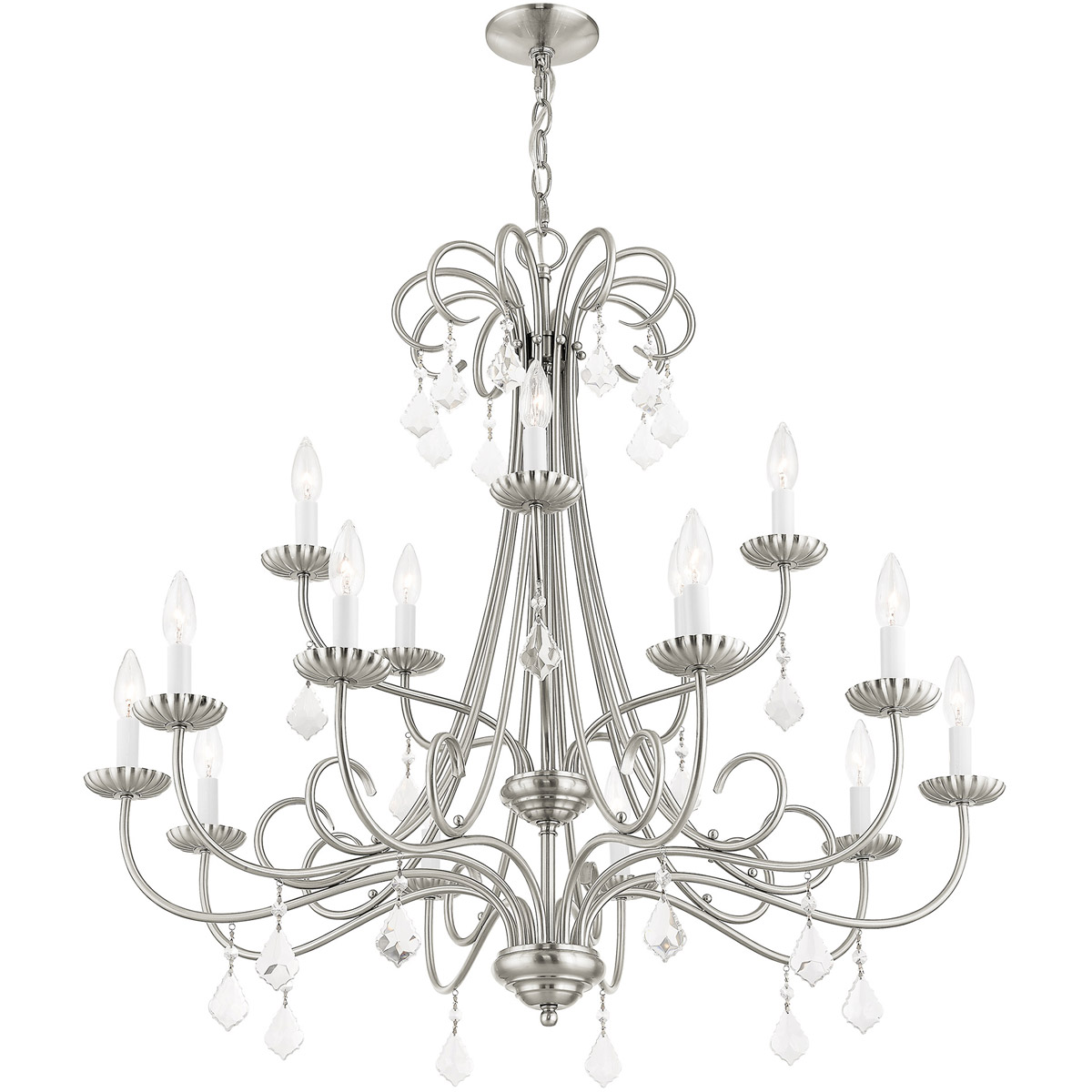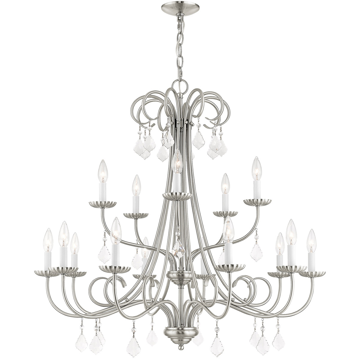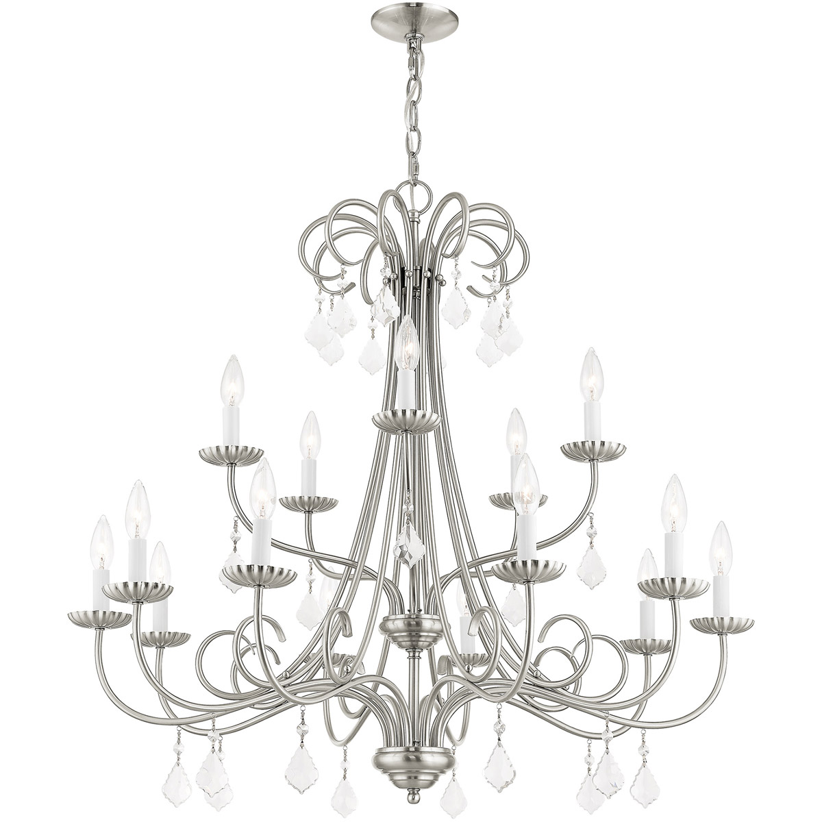 15 Light Brushed Nickel Foyer Chandelier with Steel base material-Lighting Lumens