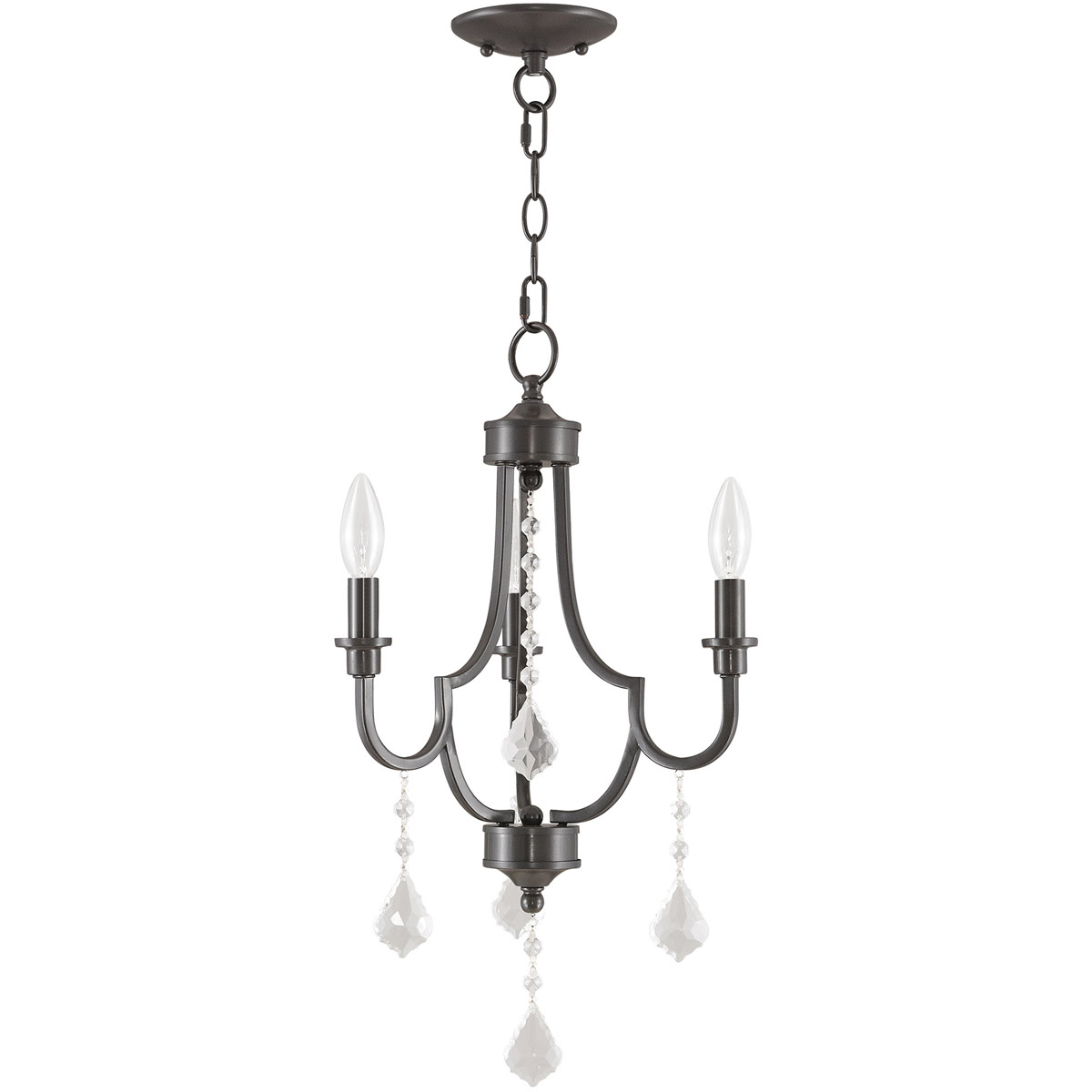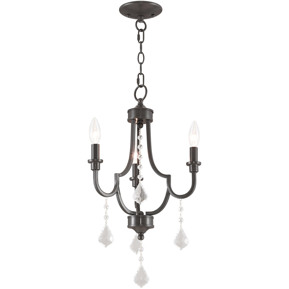 Bring simple, yet elegant, charm to your living space with this beautiful transitional three light mini chandelier. In an English bronze finish, the clear crystals on the mini chandelier provide a understated clean look, that’s perfect for any room in your home.